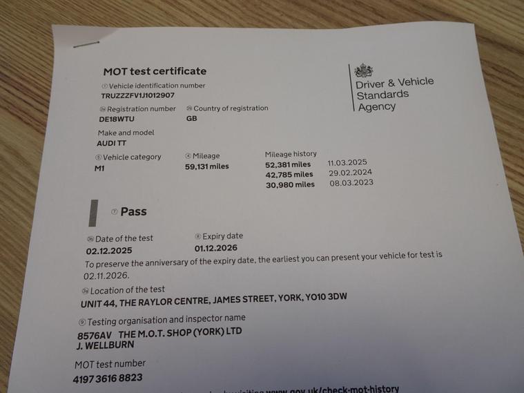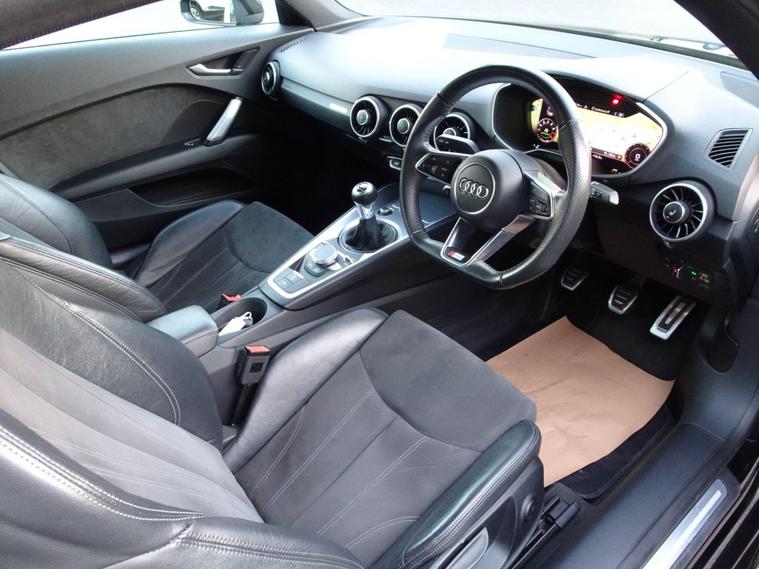 This 2018 Audi TT TFSI S line offers a compelling blend of style and performance, featuring a 1.8L Turbocharged petrol engine and a Euro 6 emission class. This high spec sport coupe comes with a fully documented service history including our own Inspection and Fresh MOT for total peace of mind.As an S line model, it comes equipped with a range of desirable features including All Weather LED Headlights and heated seats for those colder mornings, Rear Parking Sensors for easier manoeuvring, and a Light and Rain Sensor that automatically adjusts your headlights. Inside, you'll find Air Conditioning to keep you comfortable and Bluetooth Mobile Telephone Preparation for seamless connectivity on the go. Find your way with the integrated SAT NAV and virtual dashboard. With an impressive fuel economy of 47 miles per gallon, this Audi TT TFSI S line demonstrates excellent efficiency compared to similar vehicles. Its low CO2 emissions further highlight its environmentally conscious design. This combination of a sporty driving experience, advanced technology, and economical running costs makes it a standout choice for those seeking a premium compact sports car.First to see will buy this lovely TT at our sensible Copycars LOW PRICE...