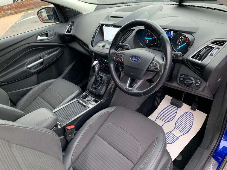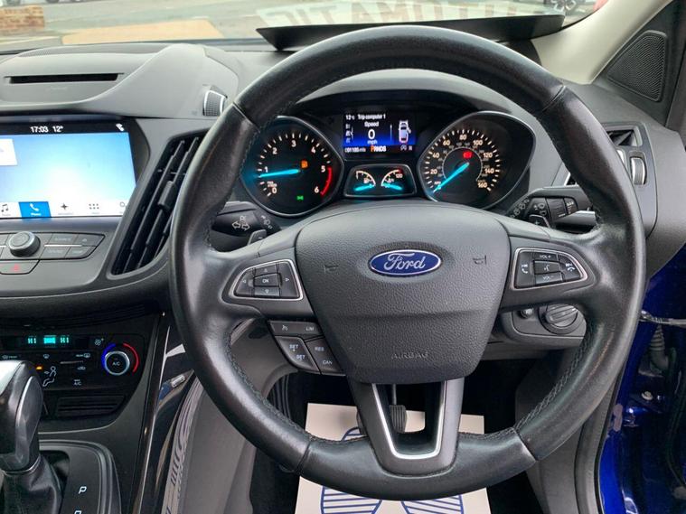 This 2017 Ford Kuga TDCi Titanium boasts an impressive MOT valid until July 2026, offering peace of mind for the road ahead. This Four Wheel Drive model is powered by a 2.0L Diesel engine, meeting Euro 6 emission standards. With its last service completed on 2025-07-16 at 88, 266 miles, this Kuga comes with a 3 month warranty for added assurance. The Titanium trim level includes a range of desirable features such as rear parking sensors with parking assistance, dual zone electronic automatic temperature control for personalised comfort, and a Ford DAB Navigation System with Ford SYNC3, which includes Bluetooth connectivity. You'll also appreciate the convenience of keyless entry and automatic halogen headlights with LED daytime running lights.The Ford Kuga TDCi Titanium stands out with its excellent fuel economy, achieving a highlight of 54 mpg, which is better than many similar vehicles. Its low CO2 emissions further contribute to its appeal, making it a more economical choice. This combination of efficient performance, advanced technology, and practical features makes this 2017 Ford Kuga a compelling option for those seeking a capable and well equipped SUV..