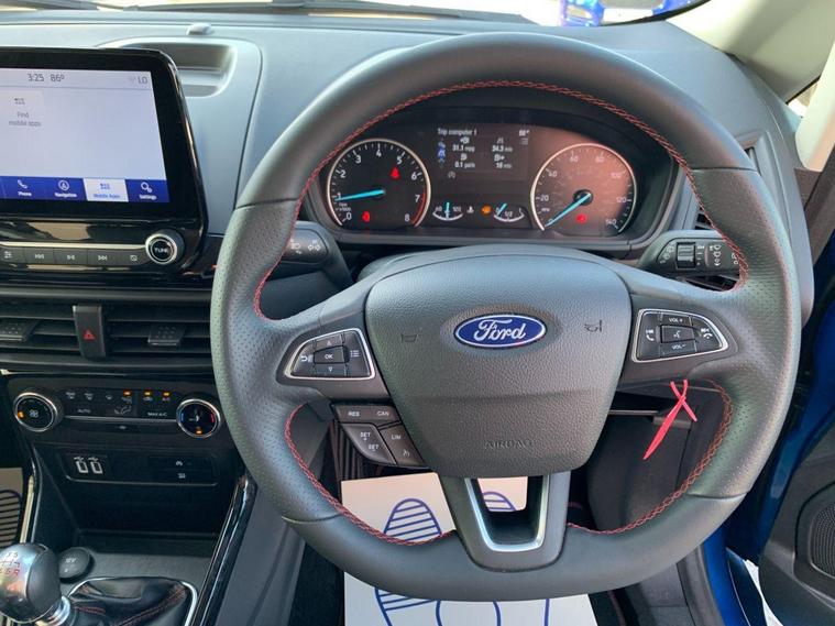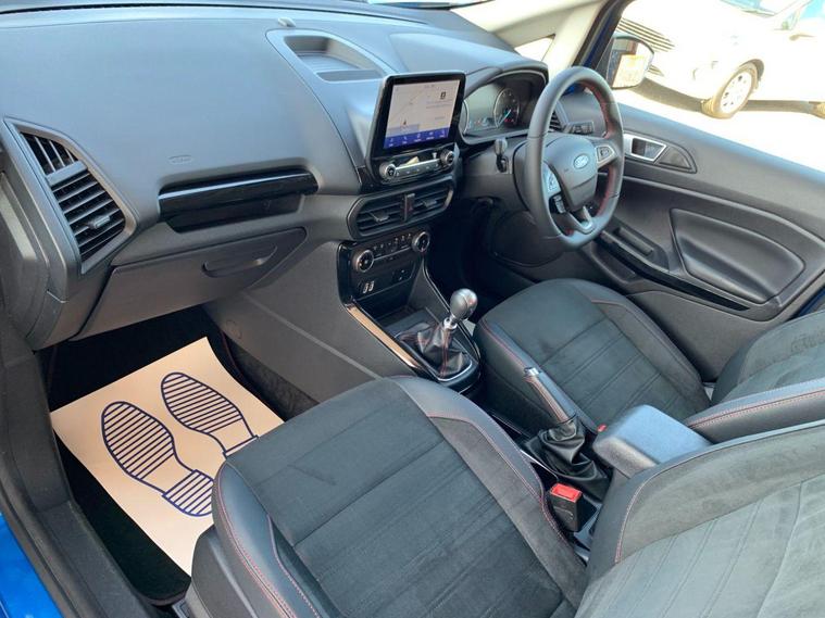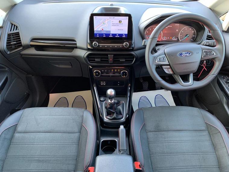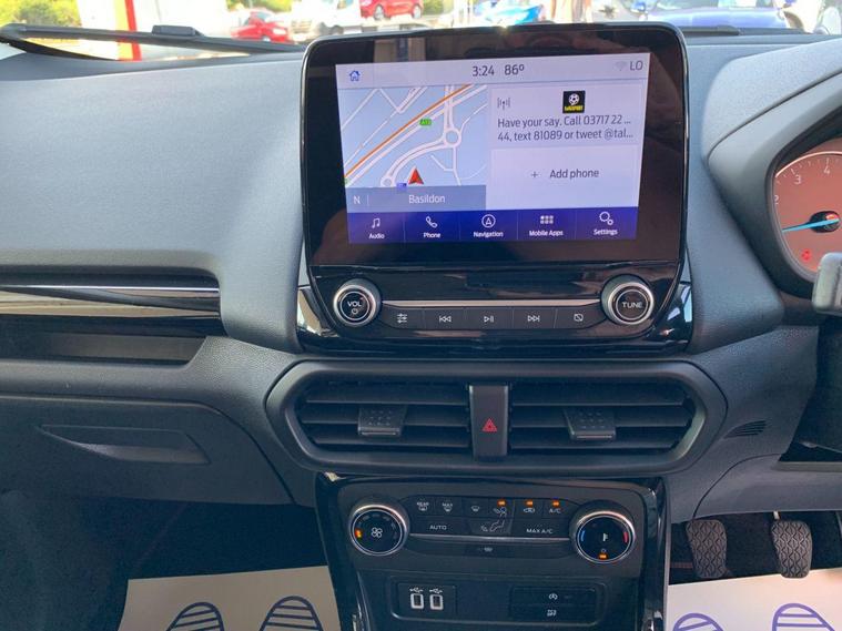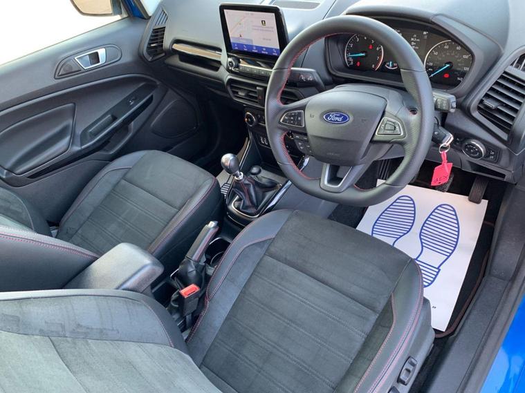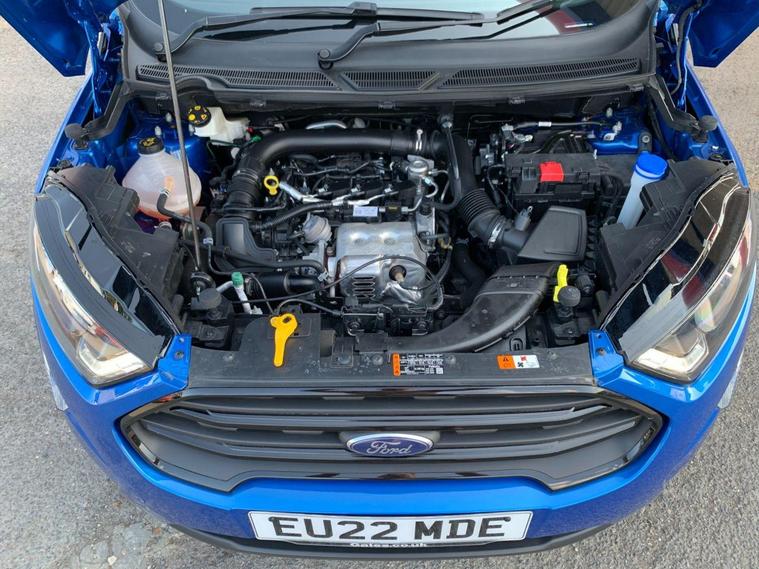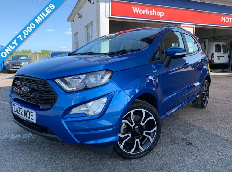 This 2022 Ford EcoSport ST-Line Design boasts exceptionally low mileage for its age, having covered just 7000 miles, and has had only one owner since new. This Euro 6 compliant 1.0L petrol model comes with a valid MOT until June 2026 and benefits from a recent service completed on 20 June 2025 at 7108 miles, offering peace of mind with a 3 month warranty included. Inside, you'll find a user friendly experience with Ford SYNC 2.5 featuring an 8 inch touchscreen, compatible with Android Auto and Apple CarPlay, alongside Bluetooth connectivity. Practicality is enhanced by automatic headlights, LED low beam headlights, and a rear view camera for easier parking.The Ford EcoSport ST-Line Design stands out with its impressive fuel economy, achieving 48 miles per gallon, which is a notable advantage over many similar vehicles. Its low CO2 emissions further contribute to its appeal, making it a more environmentally conscious choice. Manual air conditioning ensures a comfortable cabin temperature in all conditions, making this EcoSport a well equipped and economical option for everyday driving..