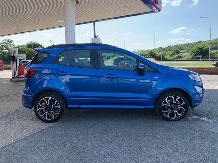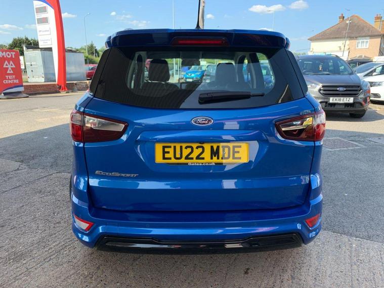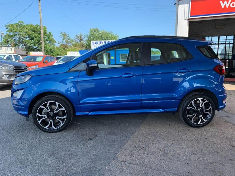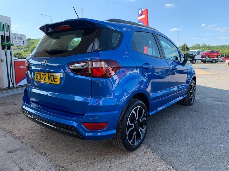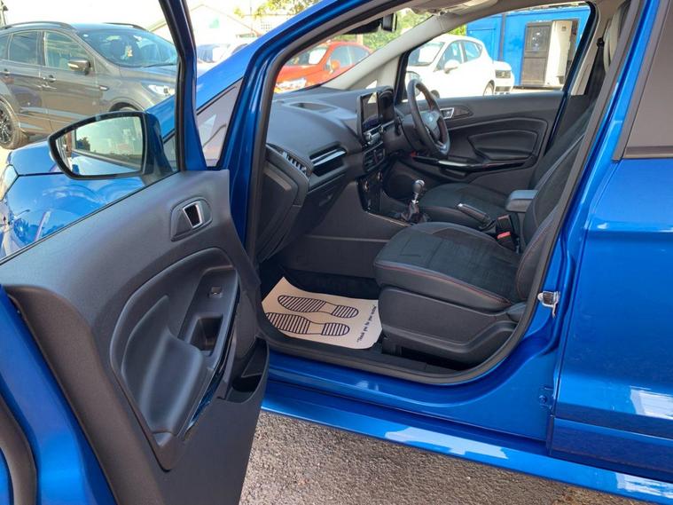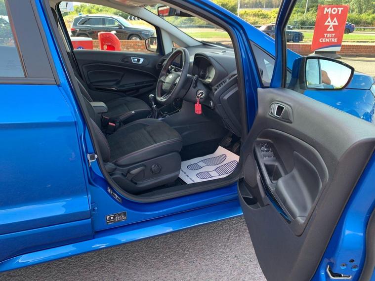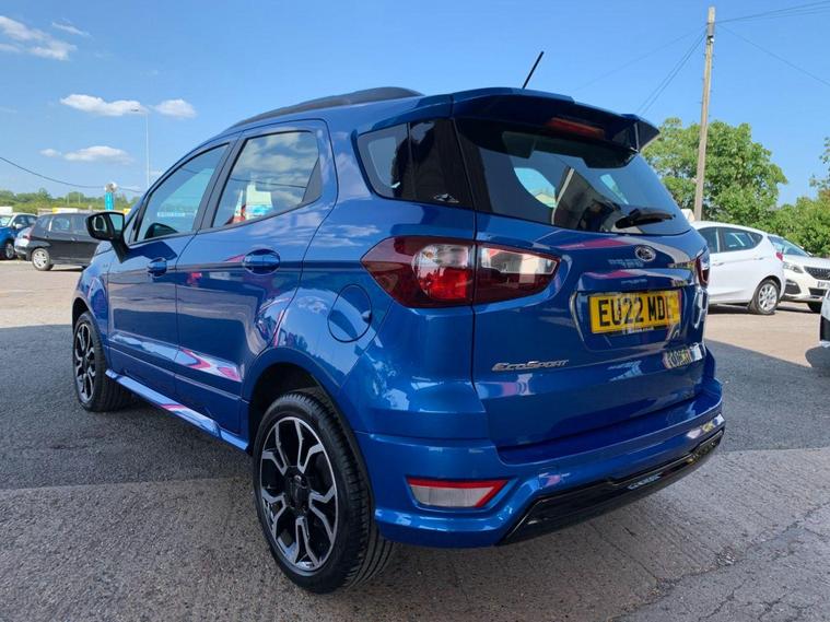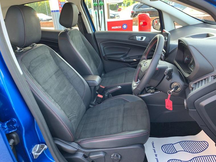 This 2022 Ford EcoSport ST-Line Design boasts exceptionally low mileage for its age, having covered just 7000 miles, and has had only one owner since new. This Euro 6 compliant 1.0L petrol model comes with a valid MOT until June 2026 and benefits from a recent service completed on 20 June 2025 at 7108 miles, offering peace of mind with a 3 month warranty included. Inside, you'll find a user friendly experience with Ford SYNC 2.5 featuring an 8 inch touchscreen, compatible with Android Auto and Apple CarPlay, alongside Bluetooth connectivity. Practicality is enhanced by automatic headlights, LED low beam headlights, and a rear view camera for easier parking.The Ford EcoSport ST-Line Design stands out with its impressive fuel economy, achieving 48 miles per gallon, which is a notable advantage over many similar vehicles. Its low CO2 emissions further contribute to its appeal, making it a more environmentally conscious choice. Manual air conditioning ensures a comfortable cabin temperature in all conditions, making this EcoSport a well equipped and economical option for everyday driving..