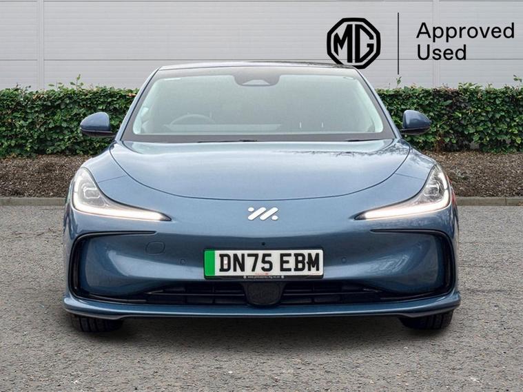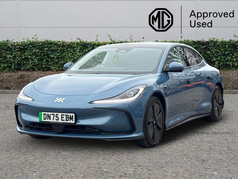 This 2025 MG IM5 Long Range electric vehicle presents an exceptional opportunity with an incredibly low mileage of just 165 miles, making it virtually as new. As a single owner vehicle, it boasts a substantial 100 kWh battery offering an impressive maximum range of 441 miles. This model comes equipped with automatic LED headlights and rear lights featuring sequential indicators, along with two zone automatic climate control that includes rear vents for passenger comfort. Parking is made simple with front and rear sensors, and connectivity is seamless thanks to wireless Apple CarPlay and Android Auto.The MG IM5 Long Range truly stands out with its remarkable performance, achieving 0-62mph in a swift 4.9 seconds, demonstrating its dynamic capability. Its extensive 441 mile range is a significant advantage, allowing for longer journeys with fewer charging stops compared to many other electric vehicles. Furthermore, the generous boot space provides ample room for luggage or shopping. When it comes to charging, a full charge at home using a 7kW charger takes approximately 17 hours and 46 minutes, while rapid public charging can replenish the battery from empty to 80% in just 19 minutes, ensuring convenience for all your travel needs..