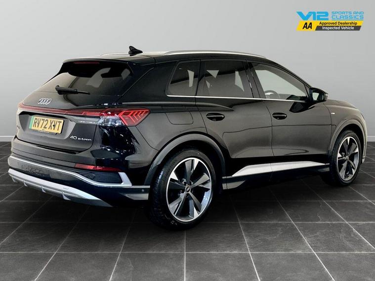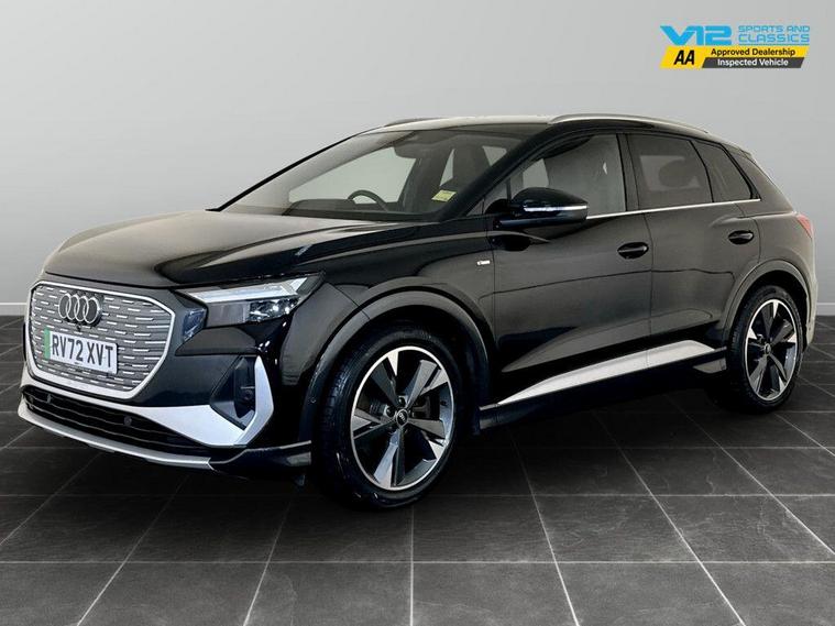 This 2022 Audi Q4 e-tron S line has been owned by only one person, offering a well maintained electric driving experience. This S line variant comes equipped with a suite of notable features, including rear parking sensors for easier manoeuvring, the Audi Smartphone Interface for seamless integration with Android Auto and Apple CarPlay, and comfort auxiliary air conditioning. You'll also find 3 zone electronic climate control to keep everyone comfortable, and LED headlights with LED daytime running lights for enhanced visibility. For peace of mind this vehicle has only had 1 registered owner and has completed a multi point AA inspection. Vehicle specification can be found below. From time to time vehicles have manufacturer recalls notified. Please read our recall policy on our website for further information. Please be advised that the advertised electric vehicle (EV) listings may experience battery degradation over time, resulting in reduced performance and range compared to the original specifications. Factors such as usage patterns, environmental conditions, and charging practices can contribute to this degradation. While we strive to provide accurate information, the actual battery health and performance of each EV may vary. Customers are encouraged to conduct thorough research and consider the potential impact of battery degradation before making a purchase decision. We recommend consulting with a qualified technician or conducting a battery health inspection for further assessment. This vehicle comes with an AVILOO Battery Health Certificate - the global standard for EV battery testing. Full independent analysis confirms excellent battery condition with detailed State of Health assessment, cell-level checks, and accurate range data. Certificate included with purchase for your complete peace of mind and future resale value..