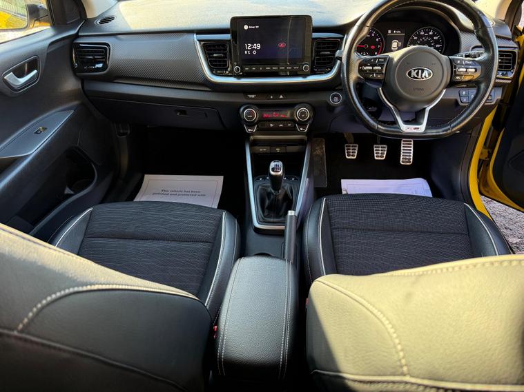This 2021 Kia Stonic T GDi GT Line S boasts a full dealership service history, with its last service completed on 2025 05 19 at 56948 miles, and has had only one owner from new. This Euro 6 compliant 1.0 litre petrol hybrid model comes with a host of desirable features, including heated front seats for those colder mornings, automatic headlight control, and front parking sensors to aid manoeuvrability. You will also appreciate the LED Bi Function Projection Headlights with Static Bending for enhanced visibility and the convenience of a smart key with an engine start stop button for keyless entry.The Kia Stonic GT Line S offers excellent value, indicated by its low insurance group, making it an economical choice for many drivers. Its impressive fuel economy of 50 mpg means fewer trips to the petrol station, and its low CO2 emissions further contribute to its cost effectiveness and environmental consideration. These highlights demonstrate how this particular Stonic stands out from other similar vehicles on the market..