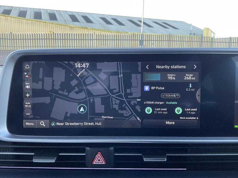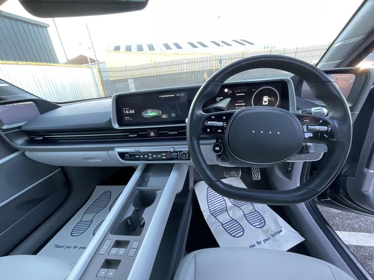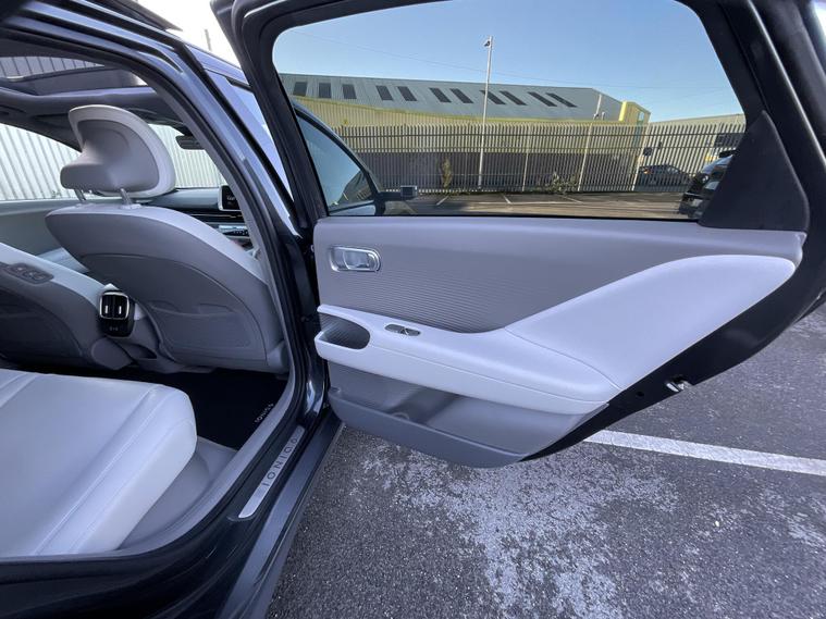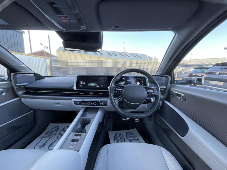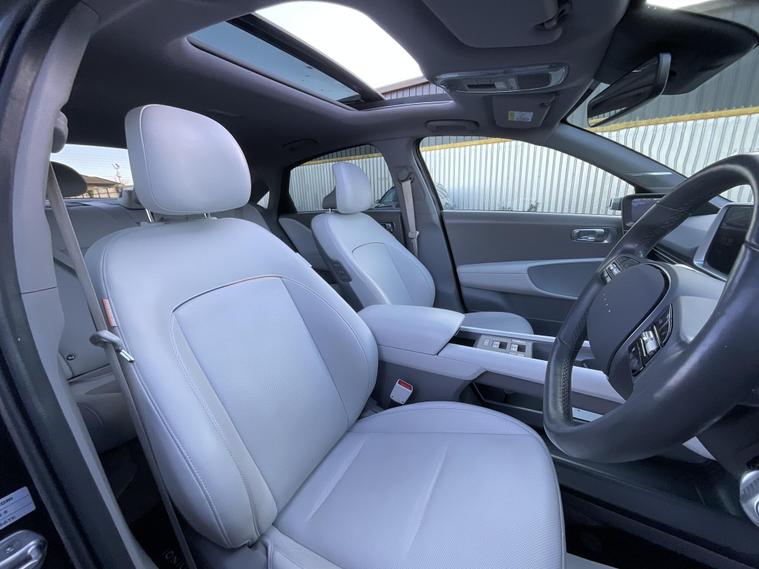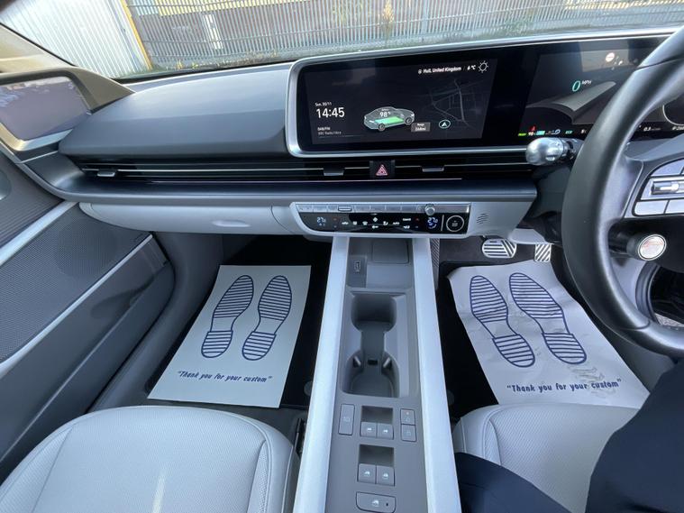 This 2023 Hyundai IONIQ 6 Ultimate boasts a substantial 77 kWh battery, providing an impressive maximum range of 338 miles when new. Charging at home with a 7kW charger will take approximately 11 hours and 45 minutes for a full charge, while rapid public charging can take you from empty to 80% in a swift 20 minutes. The IONIQ 6 Ultimate is designed for efficiency and convenience. Its electric powertrain ensures a smooth and quiet driving experience, perfect for both city commutes and longer journeys. The generous battery capacity and extensive range mean fewer stops and more time enjoying the drive. This vehicle represents a smart choice for those seeking advanced electric technology and a premium driving experience..