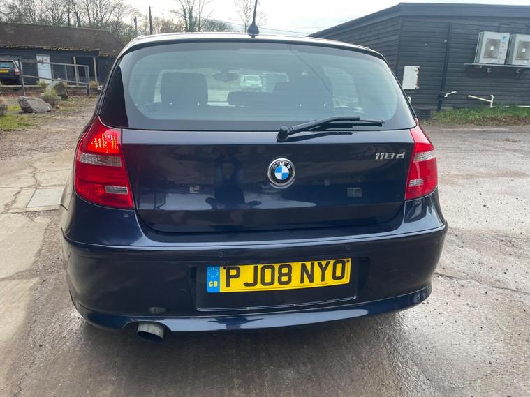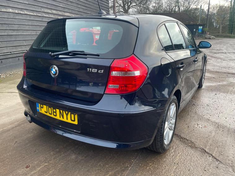 This 2008 BMW 1 Series 118d SE is a great example with a clear vehicle history check and runs and drives beautifully with no issues whatsoever Has fantastic clean mot. September 2026. No warning lights. Good Tyres. Has one or 2 small paint marks. See pictures but this should not put you off. A real good solid drive. Great valueWith now milage for an old diesel. Please buy with confidence offering peace of mind for its next owner. Powered by a 2.0L diesel engine, this SE trim model combines efficiency with BMW's renowned driving dynamics. Inside, you'll find a host of convenient features designed to enhance your journey, including Bluetooth telephone preparation for seamless connectivity and the BMW Professional Radio with a CD player. For music lovers, there's also a 6CD autochanger with MP3 facility located in the luggage compartment, ensuring your favourite tunes are always on hand. The auto dimming interior mirror adds a touch of sophistication and practicality, reducing glare for a more comfortable drive.The 118d SE stands out with its low CO2 emissions, making it a more environmentally conscious choice compared to many other vehicles in its class. This focus on efficiency, combined with the comprehensive entertainment system and the clear provenance, highlights how this BMW 1 Series offers a well rounded and appealing package for anyone seeking a premium compact car.Appointment only. Please call to arrange appointment to view. All our vehicles are prepared to a very high standard. Covered by AA and leave the premises with a fully covered warranty, 12 month breakdown cover with AA and a professional valet. Wattaspp videos are available on request, please get in touch today to avoid disappointment.