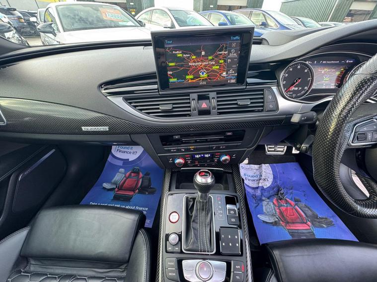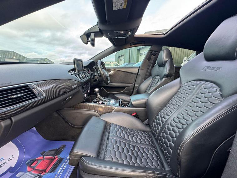 This 2015 Audi RS7 TFSI V8 offers a compelling blend of performance and luxury, boasting a powerful 4.0 litre petrol engine and a sophisticated four wheel drive system for exceptional handling. As a Euro 6 compliant vehicle, it meets modern emissions standards. Inside, you'll find electrically adjustable front seats with a memory function for the driver, ensuring personalised comfort on every journey. Stay connected and entertained with the mobile telephone preparation featuring a Bluetooth interface. The Audi Matrix LED headlights provide superior illumination, while the acoustic parking system with rear sensors makes manoeuvring easier. For added convenience, a head up display projects key information directly into your line of sight. This RS7 also benefits from a generously sized boot, offering ample space for your luggage or shopping.Experience exhilarating performance with this Audi RS7, capable of accelerating from 0 to 62 miles per hour in a swift 3.9 seconds. This impressive acceleration demonstrates its superior capability compared to many other vehicles in its class. The combination of its potent engine, advanced drivetrain, and thoughtful features like the head up display and LED headlights positions this RS7 as a truly remarkable car..
