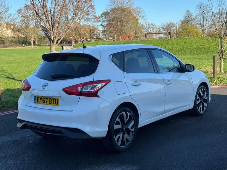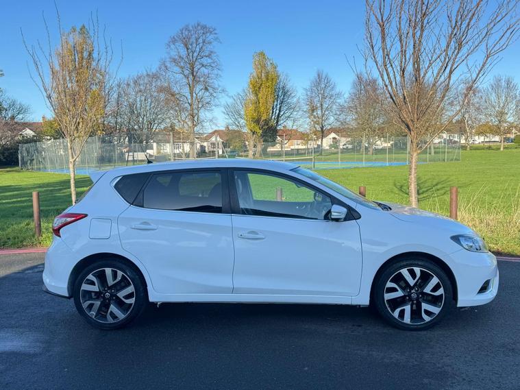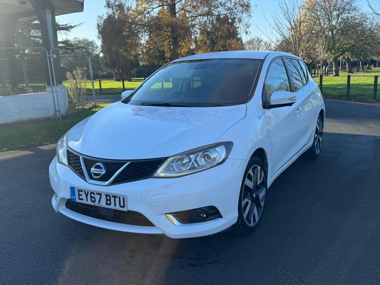 Now Available – 2017 Nissan Pulsar 1.2 DIG-T Tekna Euro 6 (s/s) 5drThis 2017 Nissan Pulsar 1.2 DIG-T Tekna is a spacious, economical, and highly equipped family hatchback. Powered by a 1.2L turbocharged petrol engine with a smooth manual gearbox, it offers excellent fuel economy and a comfortable drive. Finished in white, this Pulsar has covered 70, 000 miles, has had 2 owners, and is fully ULEZ compliant.Registration: EY67BTUYear: 2017 (67)Mileage: 70, 000 milesFuel Type: PetrolTransmission: ManualColour: WhiteOwners: 2 OwnersULEZ Compliant⸻Key Features: • 1.2 DIG-T Turbo Petrol Engine – Efficient and reliable • Euro 6 Compliant – Completely ULEZ-friendly • Tekna Specification (Top Spec) – Packed with premium features • Full Leather Interior – Comfortable and stylish • Heated Front Seats – Perfect for colder days • 360° Around View Camera – Bird’s-eye parking assistance • Front & Rear Parking Sensors – Easy manoeuvring • NissanConnect Touchscreen Sat Nav – Integrated navigation • Bluetooth, USB & DAB Radio – Seamless connectivity • Keyless Entry & Push Button Start – Added convenience • Blind Spot Monitoring – Extra safety on the road • Lane Departure Warning – Driver assistance for longer trips • Cruise Control with Speed Limiter – Comfortable motorway driving • Dual-Zone Climate Control – Personalised cabin comfort • 18” Alloy Wheels – Smart and modern appearance • ISOFIX Child Seat Mounts – Family-friendly practicality • Spacious Boot & Interior – Excellent everyday usability⸻The Nissan Pulsar Tekna is an ideal all-rounder — reliable, economical, and fully loaded with safety and tech features. With ULEZ compliance, low running costs, and top-spec equipment, it’s a fantastic family hatchback.Flexible finance options availablePart exchange welcomeContact us today to arrange a viewing and test drive..