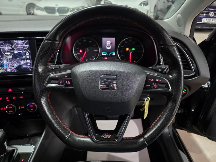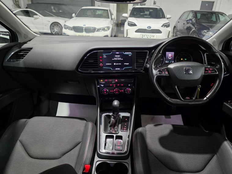 Full Service History, HPI Clear, Excellent condition, 1 Previous OwnerUSB Cable for Apple and Android CompatibilityNavigation SystemSEAT Full Link Smartphone Integration - Mirror Link - Apple CarPlay - Google Android AutoPark distance control (Front & Rear ) Body-Coloured Door HandlesBody-Coloured Door Mirrors with Integrated LED IndicatorsBoot Storage NetBumpers - Exclusive FR Front and RearConvenience Pack PlusCruise ControlDigital ClockDrivers Seat Lumbar AdjustmentDual Zone Climate ControlESC - Electronic Stability Control and Tyre Pressure Warning Light IndicatorFront Sports SeatsFront and Rear Electric WindowsFront and Rear Parking SensorsFull LED HeadlightsInterior Chrome DetailingInterior FR Black - Black GlossyLED Interior Illumination PackLights Left On Warning BuzzerLower Suspension - 15mmMulti Coloured Ambient LightingMulti-Collision Braking SystemOutside Temperature GaugeRPM CounterRadiator Grille Frame in ChromeRadiator Grille in BlackRemote Central Locking with DeadlocksSEAT Drive ProfileSeatbelt Reminder - FrontSeats - Passenger Lumbar AdjustmentSplit Folding Rear Seats - 60-40Sports SuspensionStorage Box Under Drivers SeatTrip ComputerTwo Height-Adjustable Front and Rear HeadrestsTwo Remote Keys with Window Open-Close - Door Mirror Folding and Boot Opening FunctionalityVisual Twin Exhaust Pipesairbags, ABS, PAS, Spare key, 17in Alloy Wheels - Dynamic 30-2.
