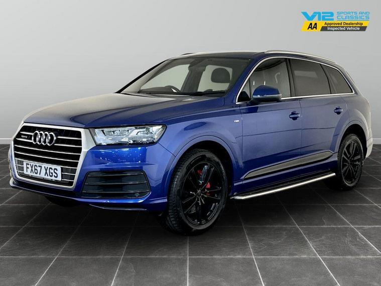 This 2017 Audi Q7 TDI V6 S line offers an exceptional blend of performance and practicality, boasting a powerful 3.0L Diesel engine and Four Wheel Drive for confident handling in all conditions. With seating for seven, this Euro 6 compliant model is ideal for families, and its impressive 2800 kg towing weight makes it a versatile choice for those needing to tow. The S line trim enhances its sporty appeal, while notable features such as running boards, automatic headlights with a light and rain sensor, and deluxe four-zone automatic climate control ensure a comfortable and convenient driving experience. The inclusion of all weather LED headlights and a Bluetooth interface further add to its modern convenience. Experience the efficiency and performance of this Audi Q7, which achieves an excellent 49 mpg, demonstrating its superior fuel economy compared to similar vehicles. Its acceleration is equally impressive, reaching 0-62mph in just 7.3 seconds, highlighting its dynamic capabilities. This model also benefits from a low insurance group, making it a cost effective option for owners.For peace of mind this vehicle has completed a multi point AA inspection. Competitive finance is also available.We are open 7 days a week and have more than 1500 cars to choose from.All our Euro 4 Petrol and Euro 6 Diesel vehicles meet the ULEZ standard.Vehicle specification can be found below. From time to time vehicles have manufacturer recalls notified. Please read our recall policy on our website for further information..