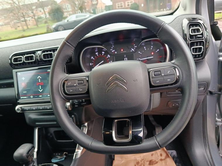 This 2022 Citroen C3 Aircross Shine Plus is a superb example, having had only one owner since new. This stylish compact SUV is powered by an efficient 1.2 litre petrol engine, meeting Euro 6 emissions standards. Inside, you'll find comfort and convenience with automatic air conditioning and climate control. Parking is made simple thanks to front and rear parking sensors, complemented by a Top Rear Vision reversing camera. Stay connected and navigate with ease using the Citroen Connected Nav system, which includes 3D navigation, Android Auto, Apple CarPlay, and Bluetooth connectivity.This particular C3 Aircross Shine Plus offers excellent value, highlighted by its impressive fuel economy of 54 miles per gallon. Its low CO2 emissions and low insurance group rating further demonstrate its cost effectiveness compared to similar vehicles. These factors combine to make this a sensible and appealing choice for many drivers..