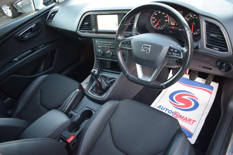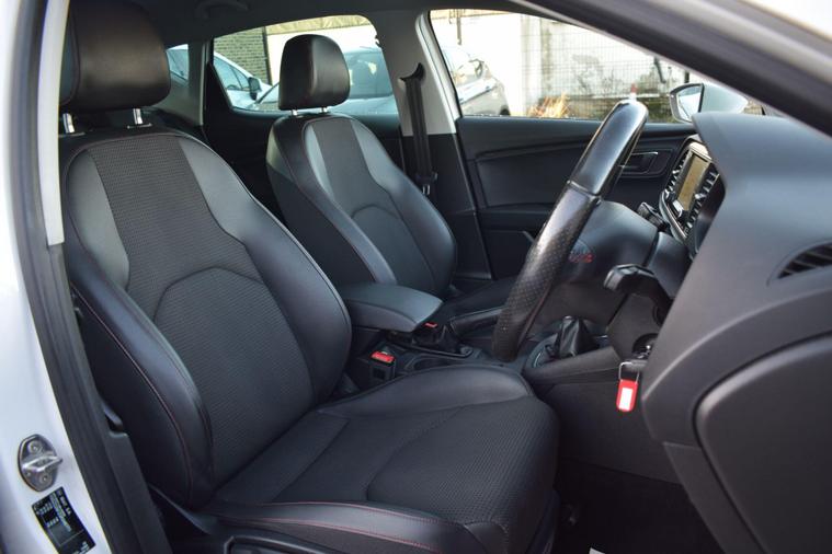 - Steering Wheel - Flat-Bottomed Perforated Leather with Red Stitching and FR Logo