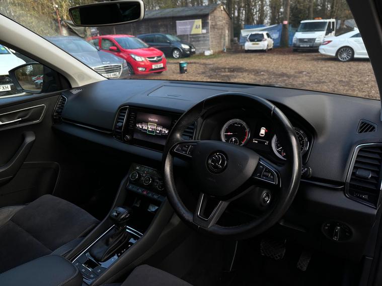 1 OWNERWILL COME WITH A FULL ''AA'' MECHANICAL INSPECTION BEFORE SALE, COMES WITH:Iso fixActive brake assistFoldable/Adjustable/Heated mirrorsAndroid/apple car playPrivacy glassUsb portBluetoothSat navHeated seatReversing cameraParking sensors Lane assistTmpsMulti functional steering wheelElectric windows Dab radioElectric Handbrake Speed readerAdjustable headlightAlloys wheelsSteering wheel adjustment Auto start/stopAuto holdHeated mirrors Keyless entray/startAdaptive cruise controlThis Skoda Karoq TSI SE L from 2018 is a standout choice, having been owned by just one person and boasting exceptionally low mileage of only 37, 446 miles. This Euro 6 compliant 1.5 litre petrol engine SUV offers a refined driving experience, complemented by its SE L trim. Inside, you'll find a comfortable 3 spoke leather sports multi-function steering wheel, and for your convenience, the Rain and Light Assistant automatically controls headlights and the auto-dimming rear view mirror. Safety is also a priority, with seat belt signalisation and pretensioners included.The Karoq TSI SE L excels in several key areas, demonstrating its superiority over other vehicles in its class. Its impressive fuel economy of 50 mpg means fewer trips to the petrol station, while its low CO2 emissions are beneficial for the environment. You'll also appreciate the generous boot space, perfect for all your luggage or shopping needs. Furthermore, its low insurance group rating makes it an economical choice to own and run. For those who enjoy a responsive drive, this Karoq achieves 0 to 60 mph in a swift 8.3 seconds..