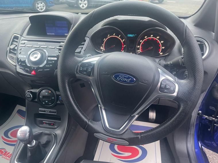 This 2015 Ford Fiesta ST-3 boasts exceptionally low mileage for its age, having covered just 39, 500 miles, and comes with a clear vehicle history check. This sporty hatchback is powered by a responsive 1.6L petrol engine, meeting Euro 6 emissions standards. Inside, you'll find comfort and convenience with heated driver and passenger seats, keyless entry for effortless access, and Bluetooth hands free for seamless connectivity. The Electronic Automatic Temperature Control ensures a pleasant cabin environment, while automatic headlights provide added visibility and ease of use.The performance of this Fiesta ST-3 is truly a standout feature, with an impressive 0-62mph acceleration time of just 6.9 seconds. This brisk acceleration indicates a level of performance that sets it apart from many other vehicles in its class. Combined with its comprehensive specification and low mileage, this Ford Fiesta ST-3 offers a compelling package for those seeking an engaging and well equipped driving experience..