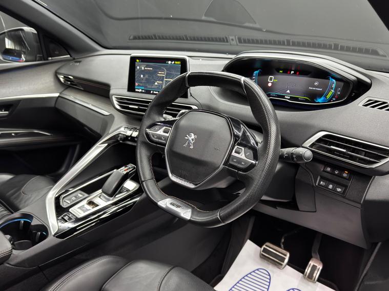 Here at Motor Gurus we are delighted to offer a Peugeot 3008 1.6 13.2kWh GT e-EAT 4WD. This vehicle is in immaculate condition inside and out. This specific vehicle is finished in a GLOSS BLACK and is matched with a BLACK LEATHER interior. This vehicle comes included with: FRONT & REAR PARKING SENSORS, FRONT & REAR PARKING CAMERAS, PRIVACY GLASS, ELECTRIC TAILGATE, PERORATED GRIPPED LEATHER STEERING WHEEL, FOCAL SOUND SYSTEM, SLIDING GLASS PANORAMIC ROOF, CRUISE CONTROL, AUTOMATIC HEADLIGHTS, TWIN CUPHOLDERS, DRIVING MODES, WIRELESS PHONE CHARGING, FRONT HEATED SEATS, DRIVER ELECTRIC/MASSAGE SEAT, CLIMATE CONTROL, SAT NAVIGATION, DAB RADIO, BLUETOOTH AUDIO, TELEPHONE CONNECTIVITY, APPLE CARPLAY, PARK ASSIST, BLIND SPOT MONITORING, TYRE PRESSURE MONITORING, TRAFFIC SIGN RECOGNITION, KEYLESS ENTRT/START AND MUCH MORE! We will also provide this vehicle with a 12 MONTH MOT as well as a FRESH OIL SERVICE before it leaves our premises (OTR)..