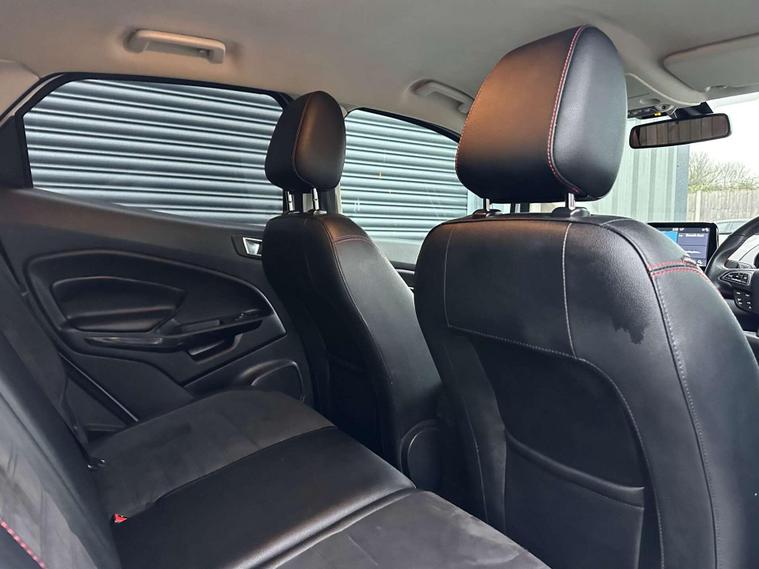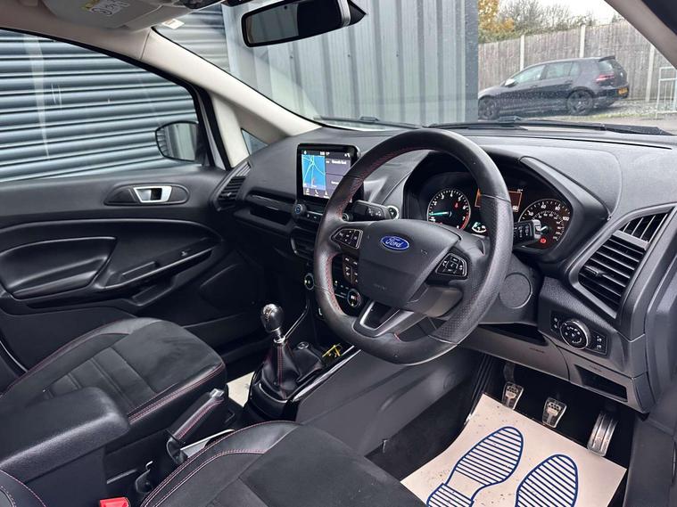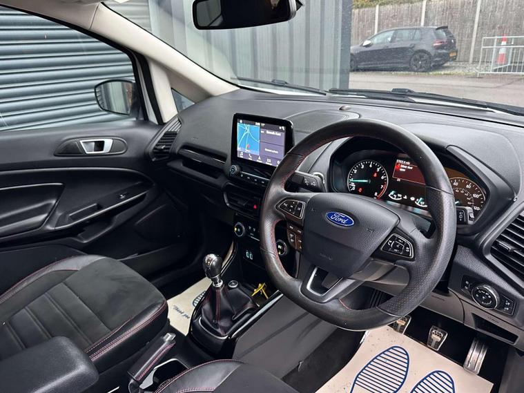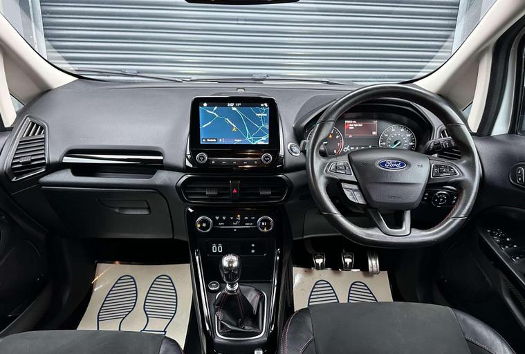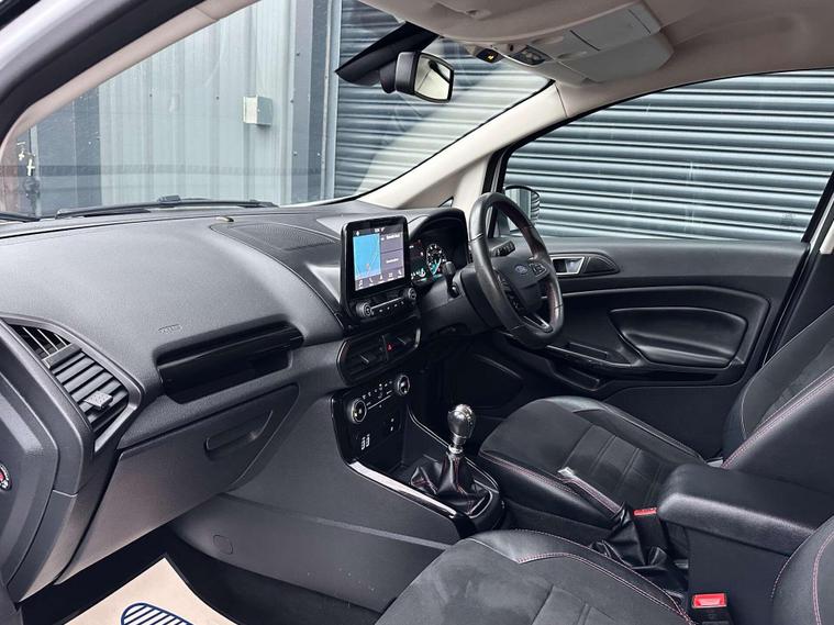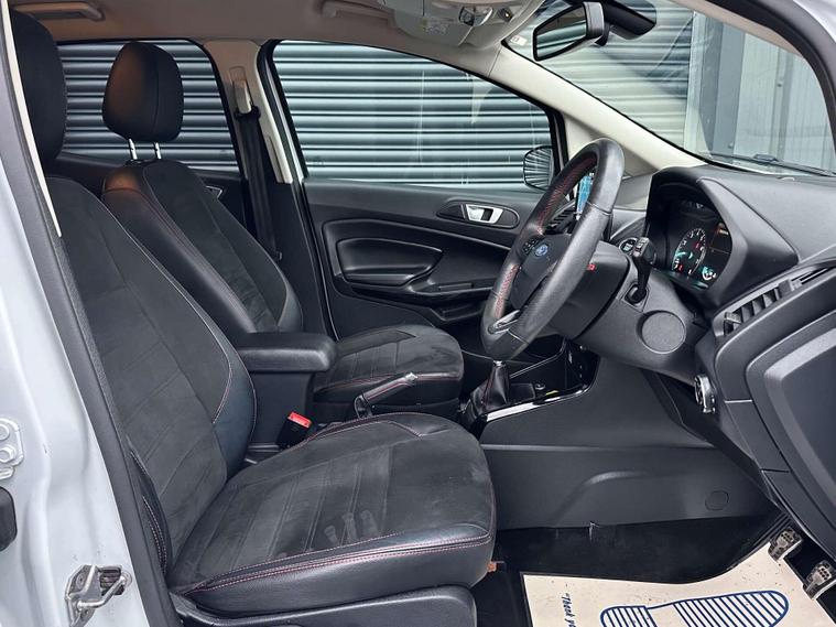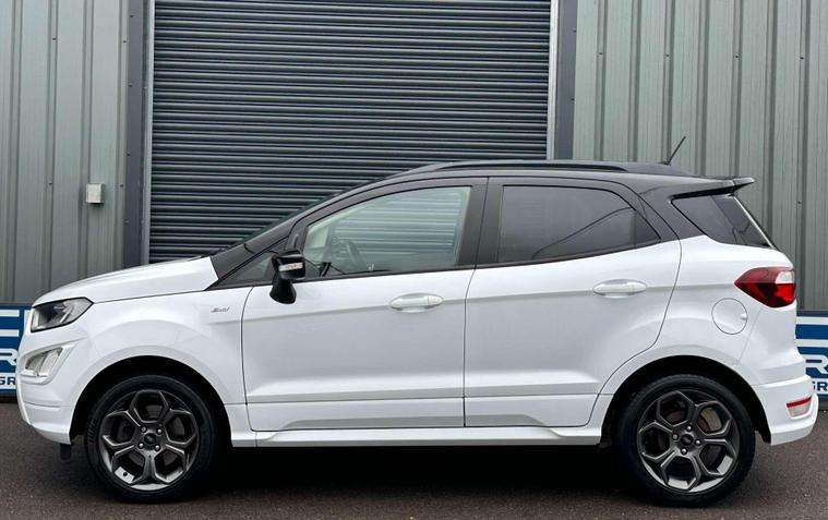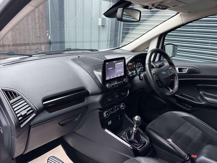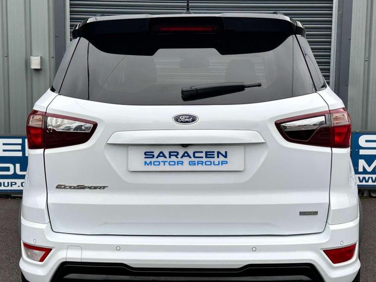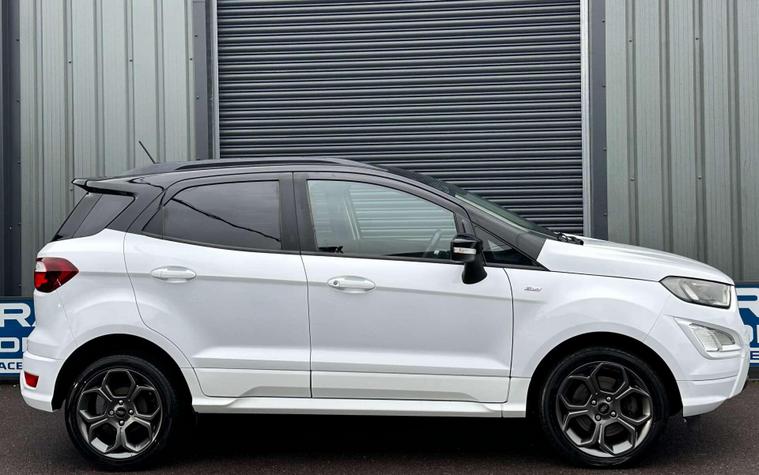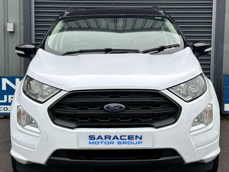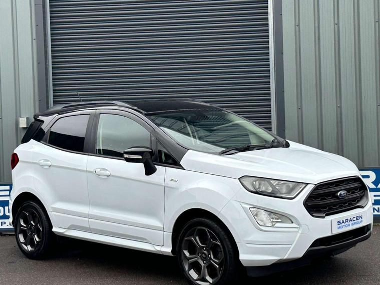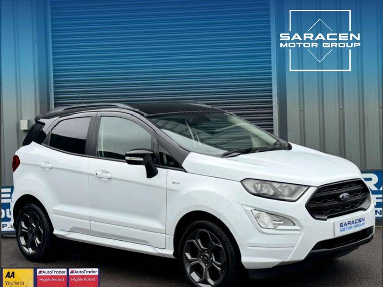 Ford 1.0 EcoSport ST-Line 5dr Euro 6 ULEZ FREE. Finished in Frozen White with contrasting black roof. Half leather/half Alcantara with contrast red stitching.17'' alloy wheels, Ford SYNC 3 navigation, Apple car play /Android auto 8'' multimedia screen, cruise control, electrically controlled/folding/heated door mirrors, front and rear electric windows, heated front windscreen, heated washer jets, automatic headlights, LED DRL's, ebony leather trimmed multifunction steering wheel, reversing camera, air conditioning, automatic wipers.Here at Saracen Motor Group we have been awarded AA Platinum dealership recognition along with being nominated for best customer service by Autotrader for 21, 22, 23, 24 & 2025. We are a 5 star dealership with only 5 star reviews across all internet platforms including Autotrader and have been regarded as one of the best dealerships to buy from in the UK. Our preparation inspected each vehicle to the highest level possible for it’s age and mileage. You can rest assure your next car has been cared for to the highest standard. Service history, V5 and the HPI certificate will all be present on viewing and collection. With our location based in Battlesbridge, Essex you can enjoy a haggle-free buying experience where you can drive away the same day if prior arranged, additional fees apply please see our website for details..