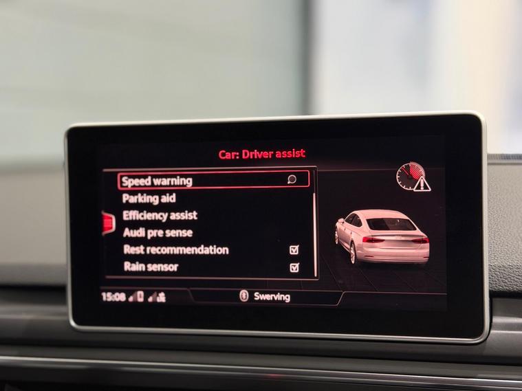 This 2019 Audi A5 TFSI S line presents a compelling blend of sophisticated design and advanced technology. Finished in a striking colour and boasting a Euro 6 compliant 2.0 litre petrol engine, this model offers an engaging driving experience. The S line trim enhances its sporty appeal, complemented by eye catching 19 inch multi spoke alloy wheels in a contrasting grey, partly polished finish. Inside, you will find luxurious Fine Nappa leather sport seats in black with Rock Grey stitching, featuring an S embossed logo for a premium feel. Comfort is further elevated with heated front and outer rear seats, ensuring a pleasant journey in all conditions.The Audi A5 TFSI S line is equipped with a suite of impressive features designed to enhance both safety and convenience. Its advanced lighting system includes Matrix LED headlights with LED rear lights, complete with dynamic front and rear indicators that provide clear signalling. The Technology Package integrates seamless connectivity, offering Bluetooth functionality and convenient wireless phone charging. Performance is also a key aspect, with the 2.0 litre TFSI engine delivering brisk acceleration, achieving 0-62mph in 9.1 seconds. These highlights demonstrate how this Audi A5 offers a superior driving experience compared to other vehicles in its class..