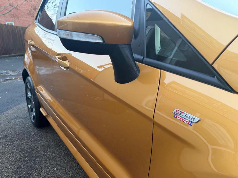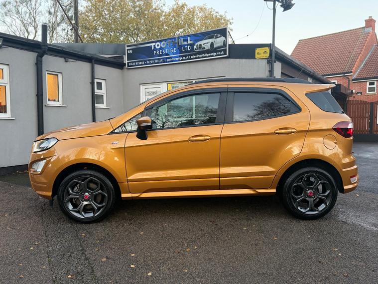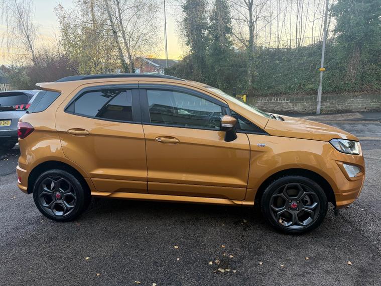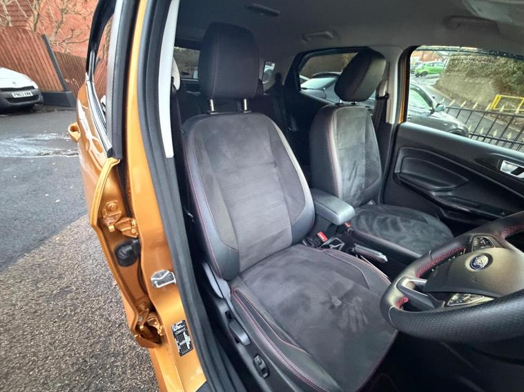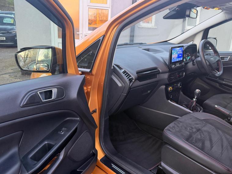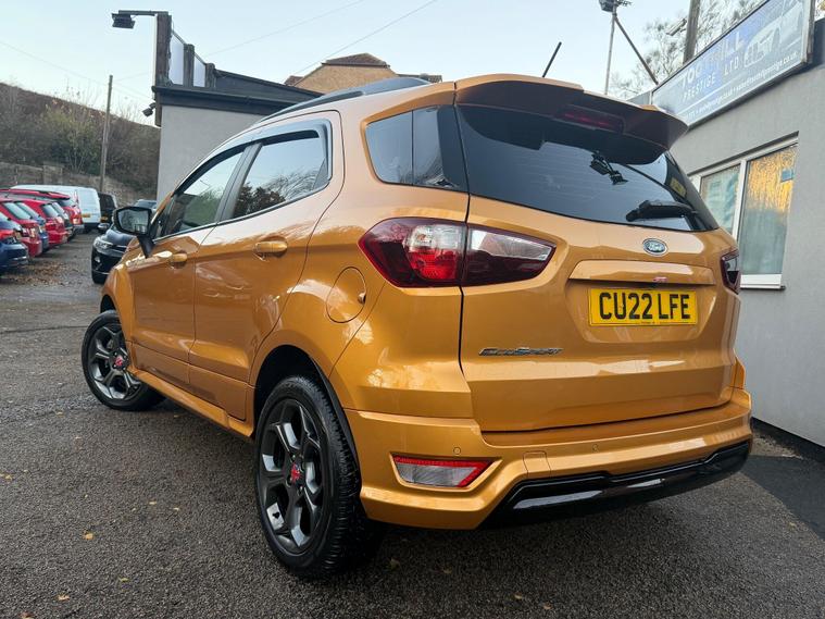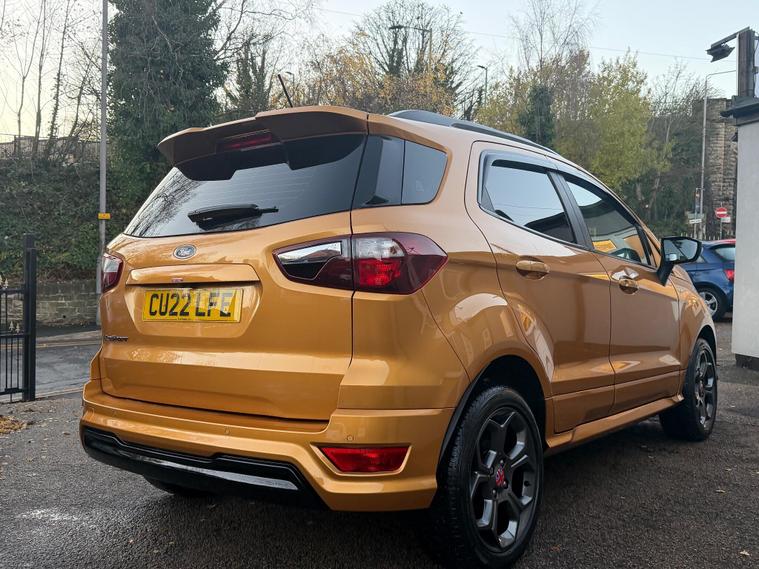 Discover this 2022 Ford EcoSport T ST Line, a stylish and capable compact SUV. This Euro 6 compliant model boasts a responsive 1.0L petrol engine, offering an impressive fuel economy of 46 miles per gallon. It comes equipped with a suite of convenient features designed to enhance your driving experience, including rear parking sensors and a rear view camera pack for effortless manoeuvring. The automatic headlights with LED low beams ensure optimal visibility in all conditions, while the Ford SYNC 3 navigation system with an 8 inch touchscreen provides seamless integration with Android Auto and Apple CarPlay.This Ford EcoSport ST Line stands out with its low CO2 emissions, indicating a more environmentally conscious choice compared to many vehicles in its class. The combination of its efficient 1.0L engine and advanced technology makes it a practical and enjoyable option for everyday driving. The inclusion of parking assistance features further simplifies parking, making this EcoSport a well rounded and appealing vehicle..