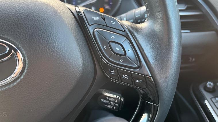 This 2021 Toyota C-HR VVT-h Design is a Toyota manufacturer approved vehicle with an exceptionally low mileage of just 21, 887 miles, backed by a full service history and a 12 month warranty for your peace of mind. This Euro 6 compliant model features a 1.8L petrol hybrid engine, offering an impressive fuel economy of 58 mpg. Inside, you'll find the Toyota Touch 2 multimedia system with an 8 inch display, complete with Android Auto and Apple CarPlay, plus Bluetooth connectivity. For convenience and safety, it includes a reversing camera with rear parking assistance, dual zone automatic air conditioning, and LED reflector headlights.The C-HR Design stands out with its adaptive cruise control, making longer journeys more relaxed. Its low CO2 emissions and low insurance group further highlight its efficiency and affordability compared to similar vehicles. This combination of advanced technology, excellent fuel economy, and comprehensive provenance makes this Toyota C-HR a compelling choice for those seeking a stylish and economical vehicle..