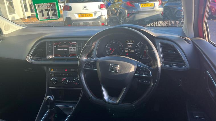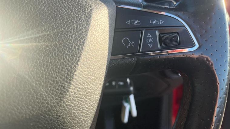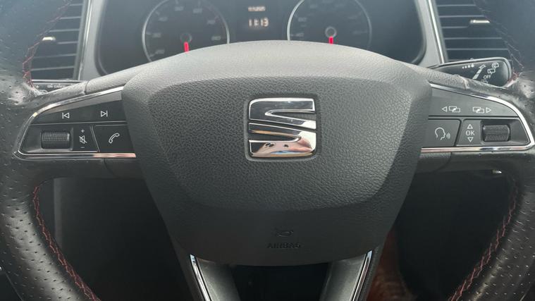 - Steering Wheel - Flat-Bottomed Perforated Leather with Red Stitching and FR Logo