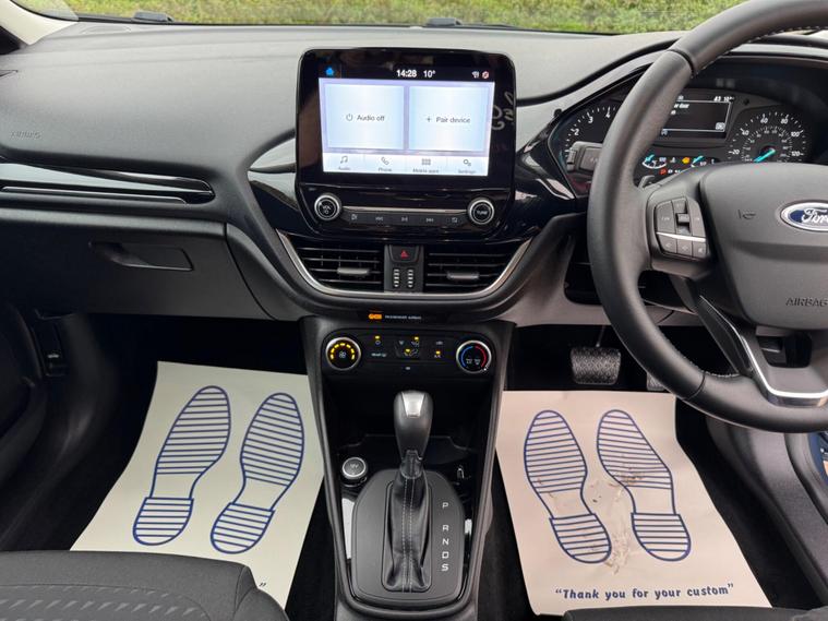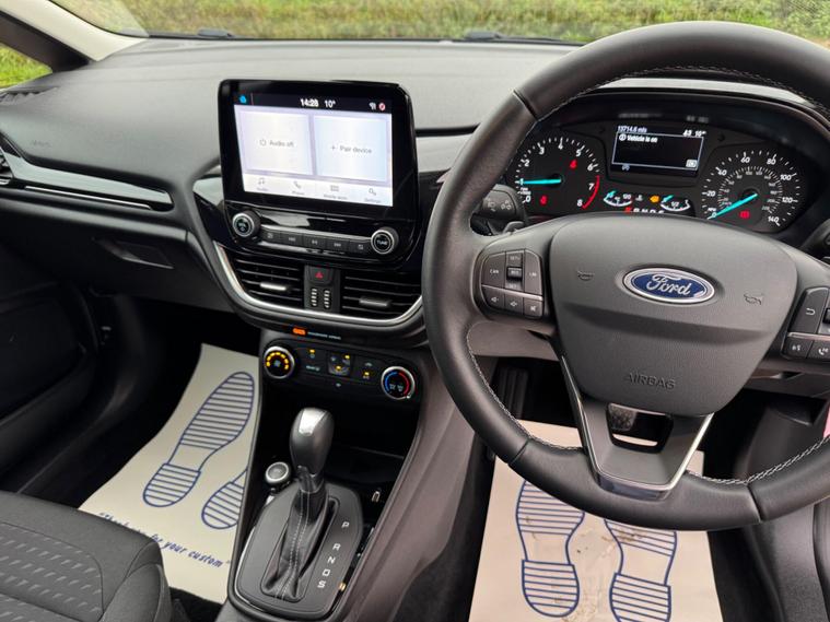 The Ford Fiesta 1.0T EcoBoost Zetec Auto Euro 6 (s/s) 5dr is a five-door, automatic hatchback featuring a 1.0-liter turbocharged ''EcoBoost'' petrol engine that is Euro 6 compliant, with stop-start technology. This specific model has 99 bhp, a top speed of 111 mph, and a 0-62 mph time of around 12.4 seconds, comes with a long Mot and the following service 17/12/2018 at 12 miles , 14/12/2020 at 1532 miles , 28/10/2022 at 2269 miles , 22/11/2025 at 13712 miles , The ''Zetec'' trim level typically includes features like alloys, climate control, and a touchscreen infotainment system with DAB radio and Bluetooth, Discover this exceptional 2018 Ford Fiesta Zetec, boasting remarkably low mileage of just 13, 678 miles for its age. This 1.0L petrol model, compliant with Euro 6 emissions standards, offers a superb blend of efficiency and practicality. Inside, you'll find the intuitive Ford SYNC system featuring a responsive touchscreen, DAB radio, and seamless integration with both Apple CarPlay and Android Auto, keeping you connected and entertained on every journey. The Zetec trim also includes convenient manual air conditioning to ensure comfort in all conditions, and automatic headlights that switch on and off as needed, enhancing both safety and ease of use.This Ford Fiesta Zetec stands out with its thoughtful features that elevate your driving experience. The inclusion of Apple CarPlay and Android Auto means your smartphone's essential apps are readily accessible on the car's display, offering navigation, music, and communication with ease. The automatic headlights are a practical addition, providing peace of mind by adapting to changing light conditions without driver intervention. Combined with its very low mileage, this Fiesta represents a well maintained and desirable option for anyone seeking a reliable and feature rich compact car..