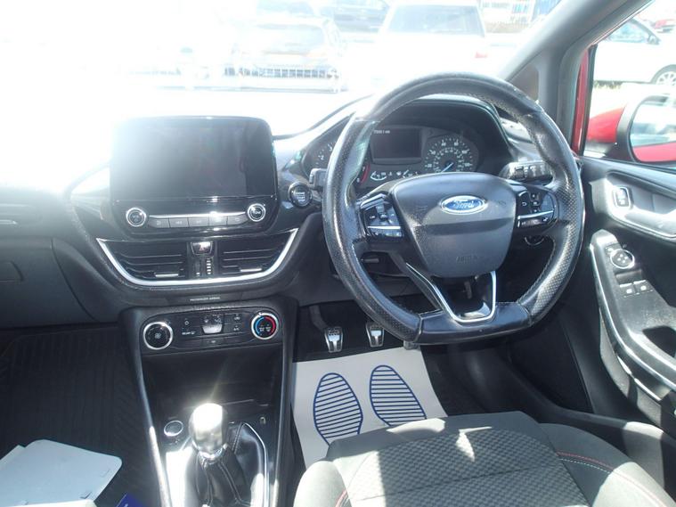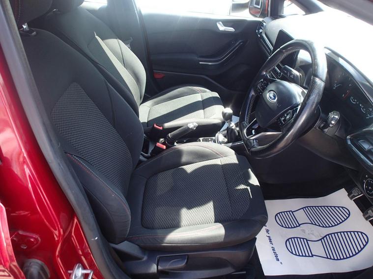 With only one previous owner, this 2018 Ford Fiesta ST-Line is a great option if you are looking for a reliable hatchback. The Fiesta, a T ST-Line variant, is equipped with a 1.0L petrol engine and complies with Euro 6 emission standards. The vehicle's history has been checked and is clear, and it comes with a 6-month warranty for added peace of mind. The partial service history provides some insight into the vehicle's upkeep. Inside, you'll find convenient features such as Ford DAB Radio with Ford SYNC3, Apple CarPlay, and Android Auto, making it easy to stay connected on the go. The automatic headlights and manual air conditioning add to the comfort and convenience.This Fiesta stands out with its impressive fuel economy of 58 mpg, meaning fewer trips to the petrol station. It also boasts low CO2 emissions, making it a more environmentally friendly choice. The acceleration, reaching 0-62mph in 10.6 seconds, provides a responsive driving experience..