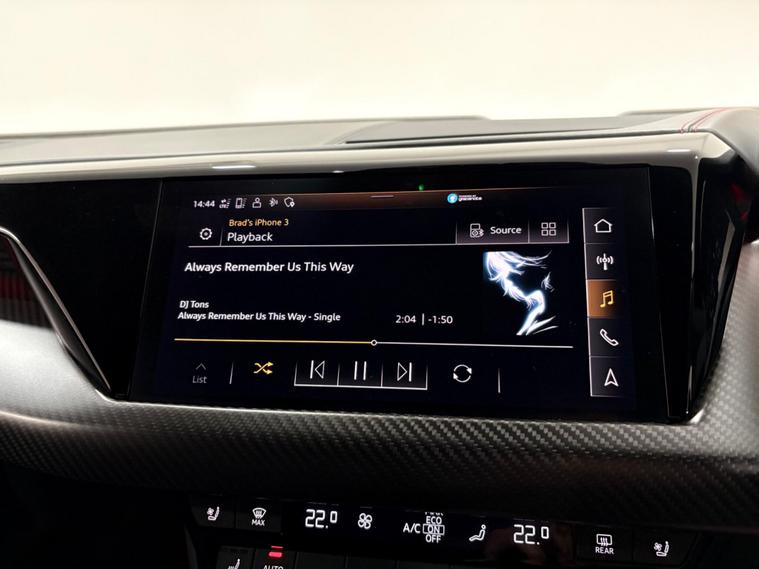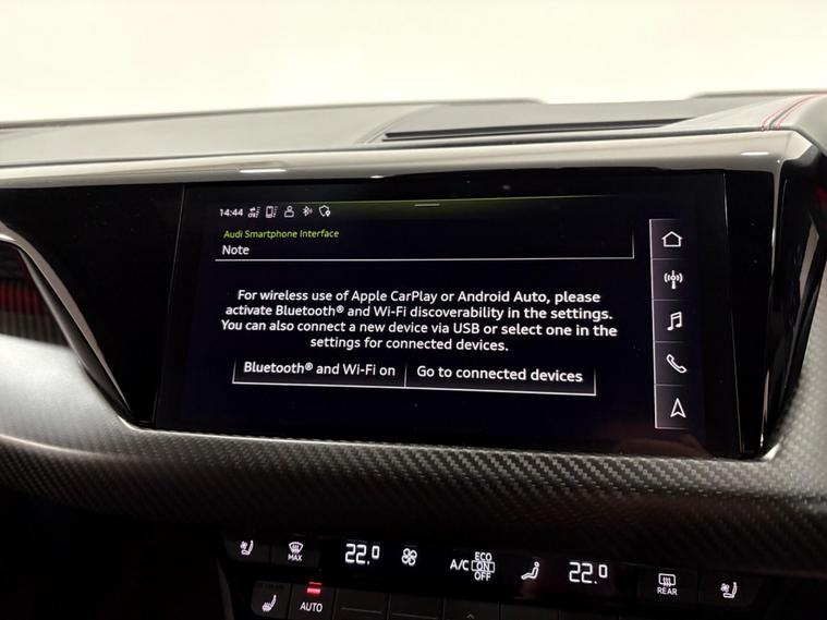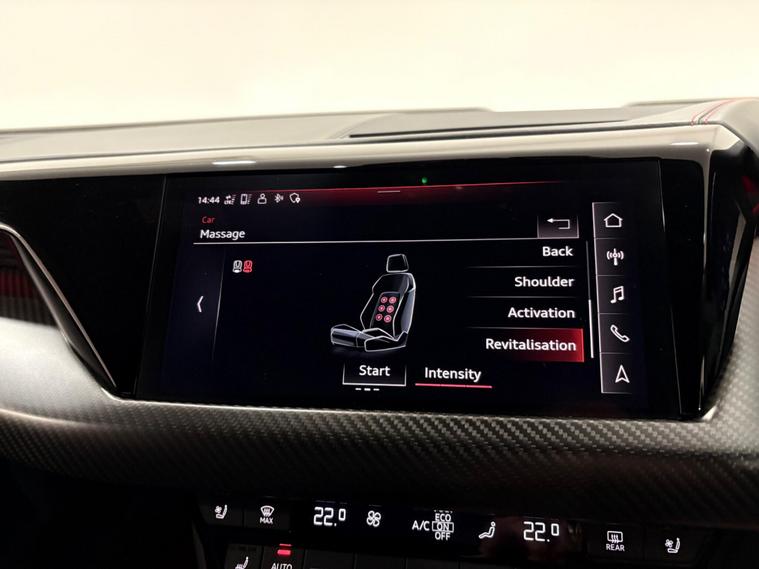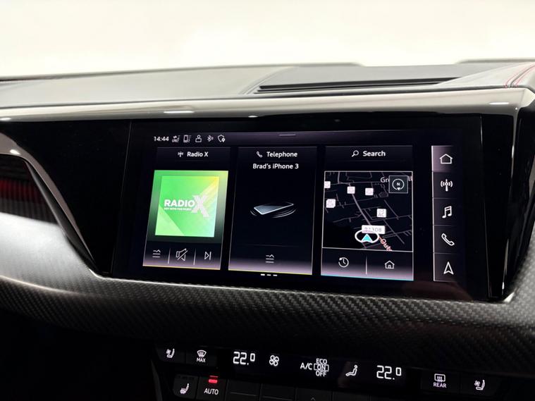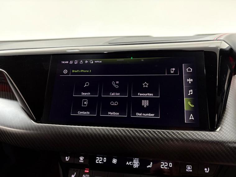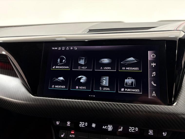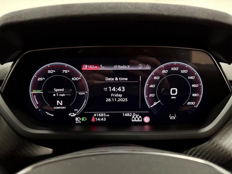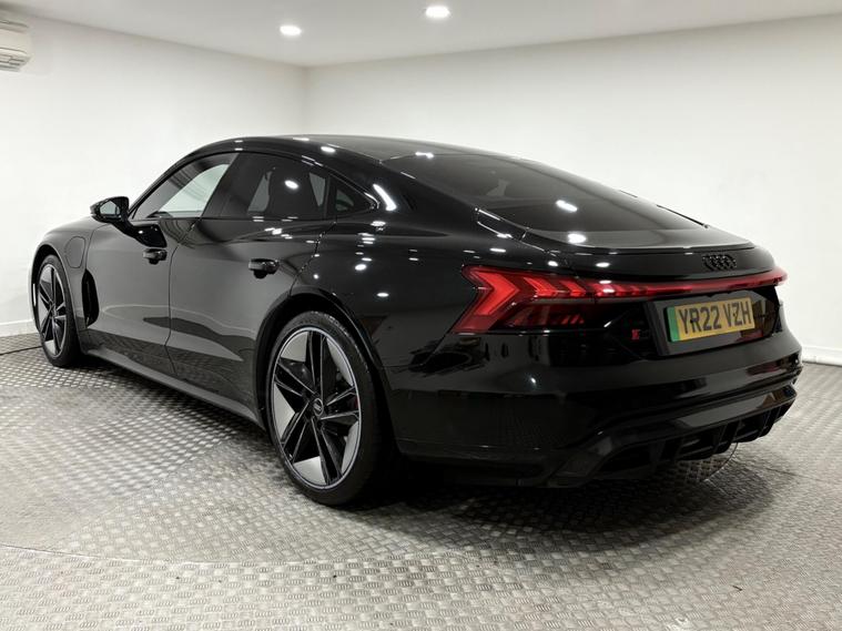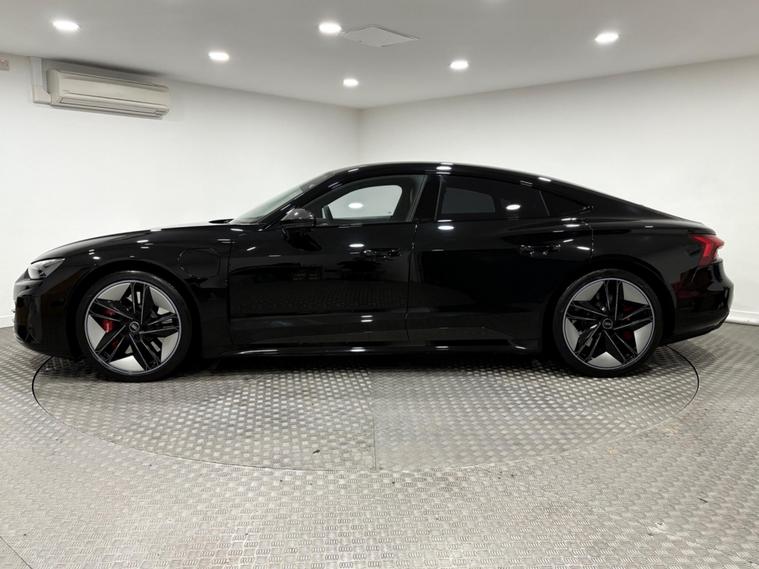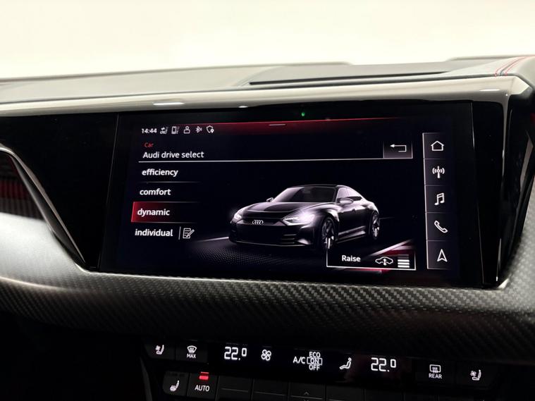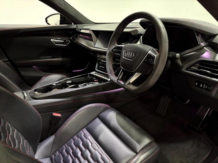 A truly stunning example of Audi’s flagship electric performance car — the RS e-tron GT Carbon Vorsprung — finished in Mythos Black Metallic paint with black leather interior. A breath taking combination of explosive acceleration, refined luxury, and cutting-edge technology. This is the highest specification available, offering every premium feature Audi builds into the e-tron GT range.This Carbon Vorsprung model includes the full carbon exterior package, stunning RS styling, and adaptive air suspension that delivers both comfort and dynamic handling. It features a Carbon roof, Matrix LED headlights with laser light, and four-wheel steering for improved agility and stability at any speed. Inside, you’ll find heated, ventilated, and massaging RS sports seats, complemented by ambient interior lighting and a premium Bang & Olufsen sound system.The car is equipped with a full driver assistance suite, including 360° cameras, park assist, and a heads-up display for added convenience and safety. It also comes with wireless Apple CarPlay and Android Auto, ensuring seamless connectivity, while fast-charging capability makes long-distance travel simple and efficient.If you’re looking for a high-spec, ultra-premium RS e-tron GT, this one has everything. Contact us to arrange a viewing or test drive.SpecificationsThe data displayed above details the usual specification of the most recent model of this vehicle. It is not the exact data for the actual vehicle being offered for sale and data for older models may vary slightly. We recommend you check the vehicle details with your sales advisor before you buy..