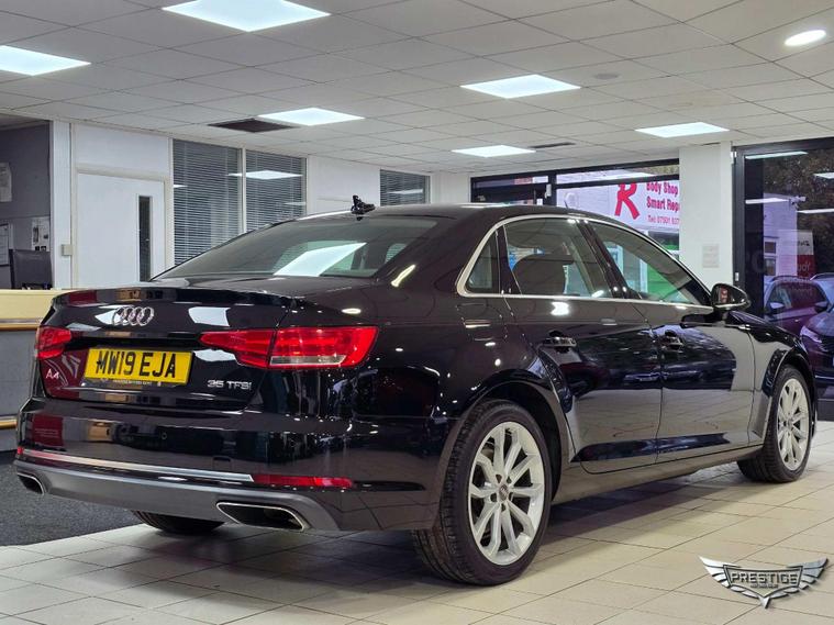 This 2019 Audi A4 TFSI Sport is presented with a full service history, most recently serviced at 52, 478 miles, offering excellent peace of mind. This stylish saloon features a 2.0-litre petrol engine and is Euro 6-compliant. It comes equipped with desirable features such as 18-inch alloy wheels with a 5-twin-spoke design, and door mirrors that fold automatically, dim, and have a memory function. Inside, you will find comfortable black Milano leather sports seats and a Bluetooth interface for seamless connectivity. The light and rain sensor automatically controls the headlights, adding to the convenience.This Audi A4 TFSI Sport also benefits from a low insurance group, making it an economical choice for many drivers. Its low CO2 emissions further highlight its efficiency compared to similar vehicles. A 3-month warranty is included, providing further reassurance with your purchase.➡️➡️➡️ Visit dealer's website ?? to apply for finance directly through our website! ??Every vehicle undergoes a comprehensive multi-point mechanical inspection, comes with a 3-month warranty and AA breakdown cover and receives a professional valet. All our cars are HPI-checked, so you can buy with confidence.Our cars are pre-delivery inspected and ready to drive away. While we try to ensure accurate information, specifications may sometimes differ. Please confirm any specific features with your sales executive before making a decision.Please note: A £240 admin fee applies when using third-party external finance providers. We are conveniently located just 2 miles from Junction 4 on the M25. For more information, visit us online at dealer's website