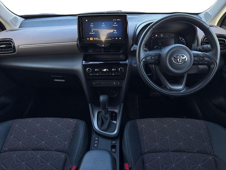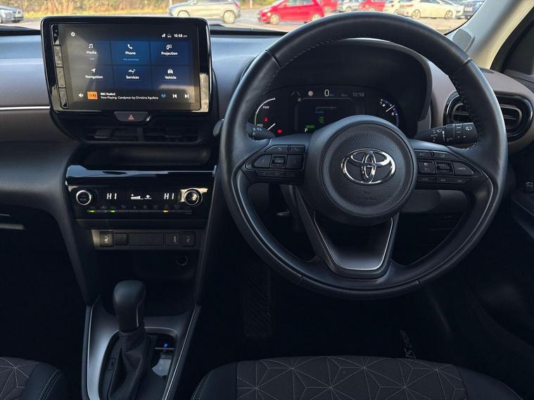 This 2023 Toyota Yaris Cross VVT-h Excel is a truly exceptional example, boasting a mere 9000 miles and a full service history, including its most recent service on March 13, 2025, at 7462 miles. As a Toyota manufacturer approved vehicle, it comes with the reassurance of a 12 month warranty and an MOT valid until March 2026. This one owner vehicle is equipped with a responsive 1.5L Petrol Hybrid Engine and meets the Euro 6 emission standards. Notable features include a reversing camera with parking assistance, smart entry and push button start for effortless access, and LED projector headlights for superior visibility. You can also enjoy seamless connectivity with Bluetooth and benefit from intelligent front parking sensors with clearance sonar and automatic braking, enhancing your parking experience.The Yaris Cross VVT-h Excel stands out with its impressive fuel economy, achieving an excellent 57 miles per gallon, which indicates it is more economical than many other vehicles in its class. Furthermore, its low insurance group and low CO2 emissions highlight its cost effectiveness and environmental consideration, making it a smart choice for both your wallet and the planet..