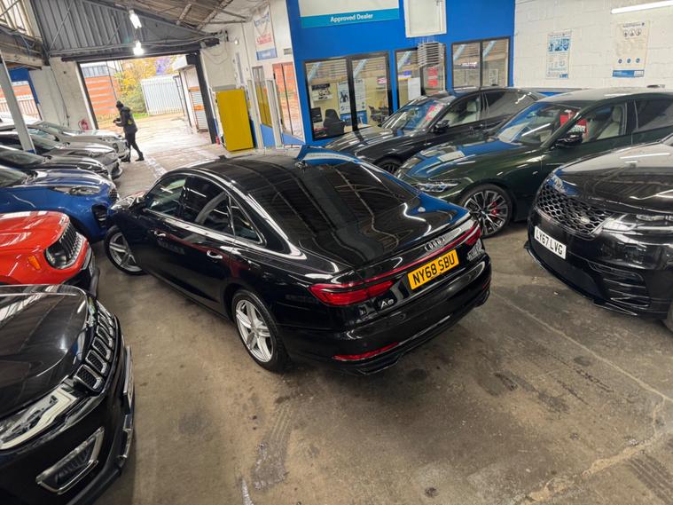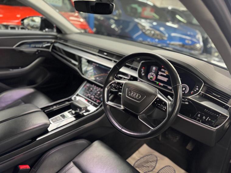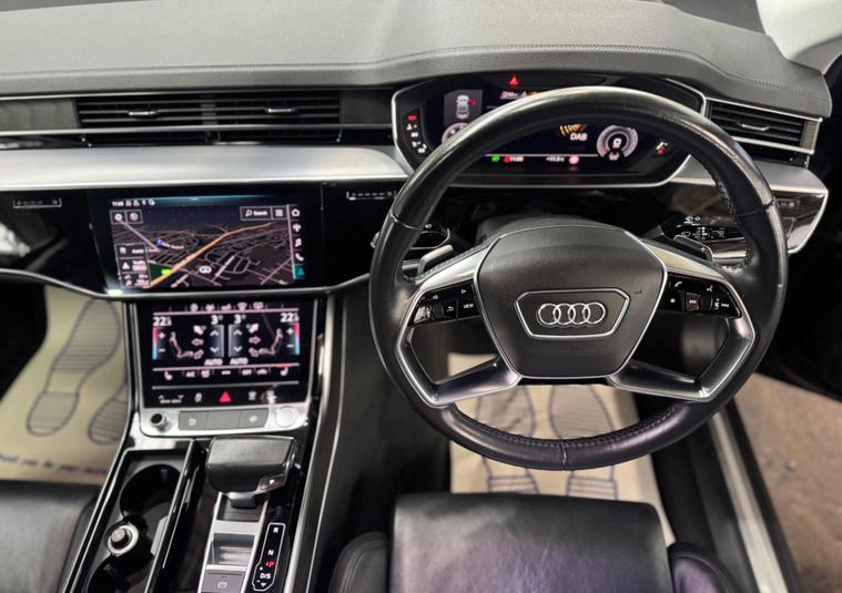 With a full service history and only one owner from new, this 2019 Audi A8 TDI V6 presents a superb ownership proposition. This sophisticated saloon boasts a powerful 3.0L Diesel engine, paired with Audi's renowned Four Wheel Drive system for confident handling in all conditions. As a Euro 6 compliant vehicle, it meets stringent emission standards. Benefitting from a clear vehicle history check and a recent service on 01 December 2025, this A8 comes with a 3 month warranty and 12 months MOT provided on purchase, offering peace of mind. Notable features include the Audi Parking System Plus with front and rear sensors, the Audi Phone Box with wireless charging, and 2 zone automatic air conditioning for ultimate comfort. The 22 way electrically adjustable seats with memory function and advanced key with keyless entry further enhance the premium experience.This Audi A8 offers impressive performance, accelerating from 0 to 62mph in just 5.9 seconds, a testament to its dynamic capabilities. The generous boot space ensures practicality for all your needs, making it a versatile choice. With only 54, 000 miles on the clock, this vehicle is exceptionally low mileage for its age, indicating it has been well cared for and driven less than comparable models. These factors combined, including its comprehensive provenance and desirable features, position this Audi A8 as a standout option in its class..
