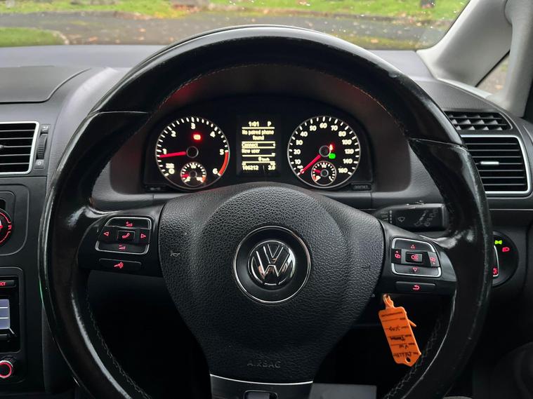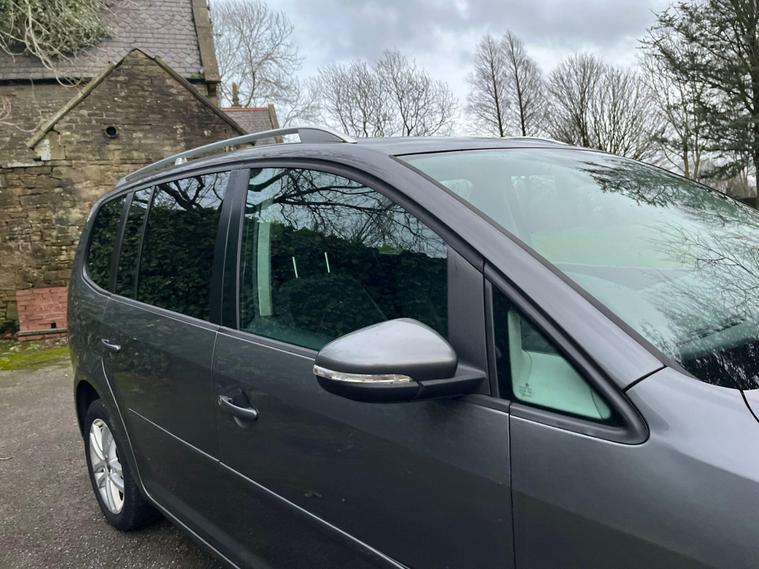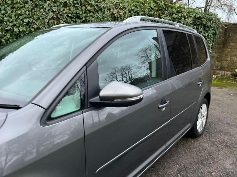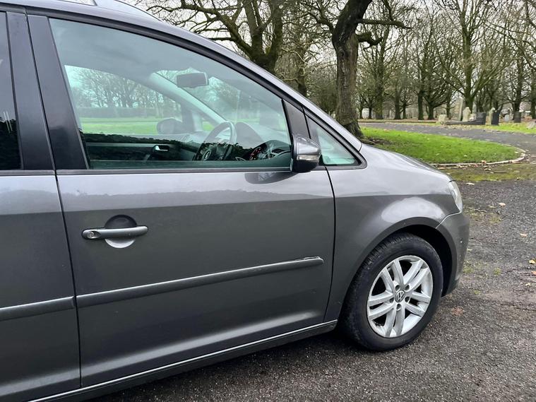 VOLKSWAGEN TOURAN 1.6 TDI SE IN A GREY EXTERIOR COLOUR WITH GREY CLOTH INTERIOR... A SPACIOUS 7 SEATER VEHICE... WILL COME WITH 12 MONTHS MOT... COMES WITH A PART SERVICE HISTORY WITH A SERVICE STAMP DONE AND ITS HAD THE CAMBELT AND WATER PUMP CHANGED... FEATURING FRONT AND BACK PARKING SENSORS... PRIVACY GLASS... FOG LIGHTS... ROOF BARS... ELECTRIC ADJUSTABLE SIDE HEATED MIRRORS... AUTO LIGHTS... MULTIFUNCTION STEERING WHEEL WITH RADIO CONTROL... CRUISE CONTROL... CD FM RADIO WITH BLUETOOTH CONNECTIVITY AND MENU OPTIONS... PARK ASSIST... CLIMATE CONTROL WITH REAR HEATED WINDOWS... HEADLIGHT ADJUSTMENT CONTROL... CUP HOLDERS... CENTRAL LOCKING DOOR CONTROLS... ALL ROUND ELECTRIC WINDOWS... ALLOY WHEELS WITH DECENT TREAD ALL ROUND... WARRANTY INCLUDED... ALL PART EXCHANGES ARE WELCOME... OPTIONAL NATIONWIDE DELIVERY EXTRA... BOOK-INS AND VIDEO VIEWINGS ARE AVAILABLE... TEST DRIVES ARE WELCOME... FOR MORE INFORMATION CALL US TODAY ON 01616232309..