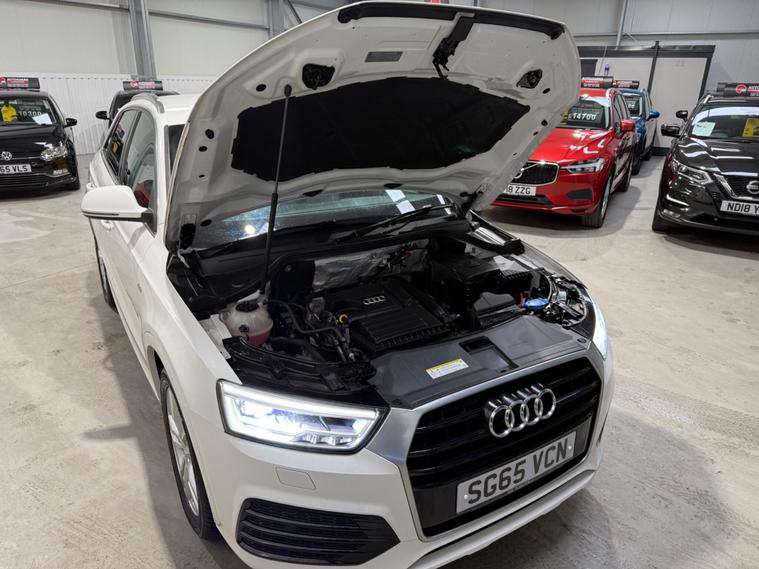 GB Auto-Care presents this stunning Audi Q3 1.4 TFSI CoD S line Euro 6 (s/s) 5dr. Boasting huge spec and sportiness! Comes with a MOT untill July 26, vehicle will go through our onsite workshop for a full Pre sale Mechanical Inspection and a full service, will leave us with a 6 month premium Warranty with nationwide breakdown included and with options to extend. FINANCE AVAILABLE NATIONWIDE HOME DELIVERY PART X WELCOMEWith an MOT valid until July 2026 and a clear vehicle history check, this 2015 Audi Q3 TFSI S line offers peace of mind. This stylish SUV is equipped with a 1.4 litre petrol engine and meets Euro 6 emissions standards. It benefits from a partial service history, with the last service completed on 27 November 2025 at 80, 318 miles. The Q3 S line comes with a 6 month warranty for added reassurance. Notable features include a Comfort Package with front parking assistance, the Audi Phone Box for wireless phone charging, and Audi Parking System Plus with Park Assist. You'll also appreciate the convenience of heated front seats and Audi Hill Hold Assist.This Audi Q3 TFSI S line stands out with its impressive fuel economy, achieving up to 50 miles per gallon, and its low CO2 emissions, making it an economical choice. Its acceleration from 0 to 60 miles per hour in just 8.9 seconds demonstrates a responsive driving experience. These highlights indicate that this Q3 offers a compelling blend of efficiency and performance compared to other vehicles in its class..
