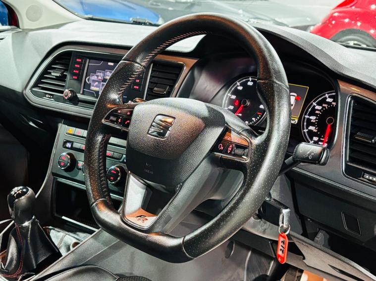 - Steering Wheel - Flat-Bottomed Perforated Leather with Red Stitching and FR Logo