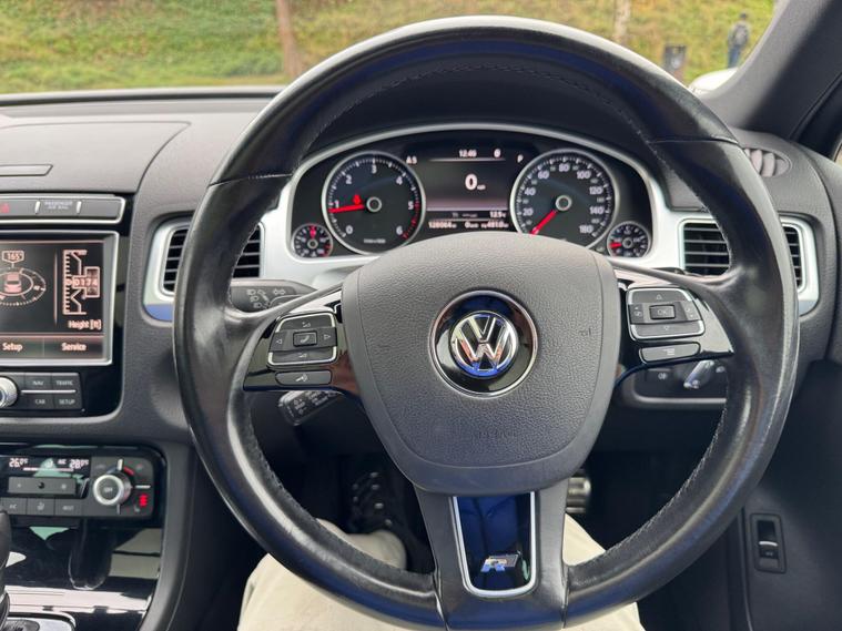 This 2015 Volkswagen Touareg TDI V6 R-Line presents a superb ownership proposition, having been meticulously maintained by just one owner from new. This impressive four wheel drive SUV boasts a powerful 3.0 litre diesel engine, meeting Euro 6 emission standards. Its R-Line trim level ensures a premium experience, complemented by a suite of advanced features. These include a rear view camera with area view and parking assistance, a comprehensive drivers assistance pack, and Bluetooth telephone preparation for seamless hands free connectivity. The vehicle also features Bi-Xenon headlights with a dusk sensor and coming leaving home function, enhancing both visibility and convenience.The Touareg TDI V6 R-Line offers a compelling blend of performance and practicality, highlighted by its swift 0-62mph acceleration in just 7.3 seconds. This capability, combined with its substantial 3500 kg towing weight, makes it an exceptionally versatile vehicle for a variety of needs. Furthermore, its large boot space provides ample room for luggage or equipment, setting it apart from many similar vehicles. The Touareg also benefits from a low insurance group, offering potential cost savings for its owner, making it an even more attractive choice. No.