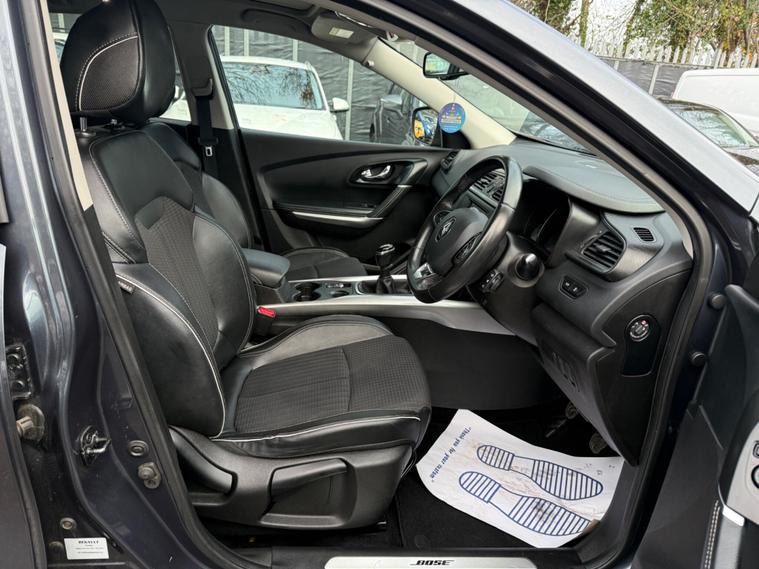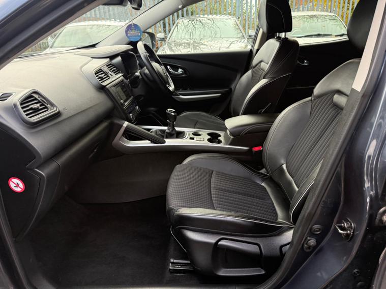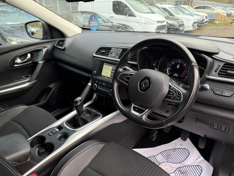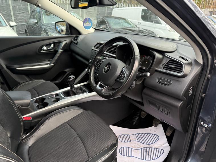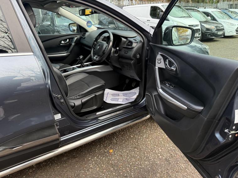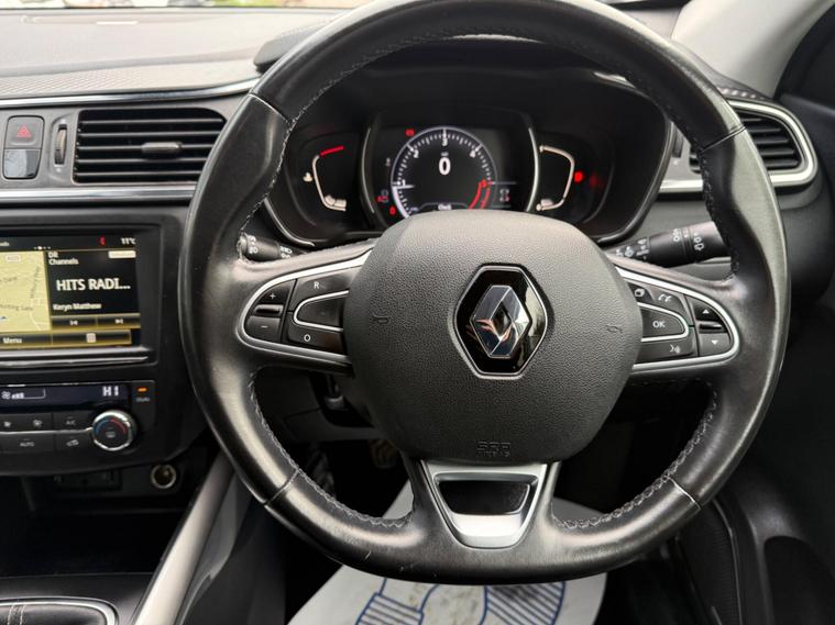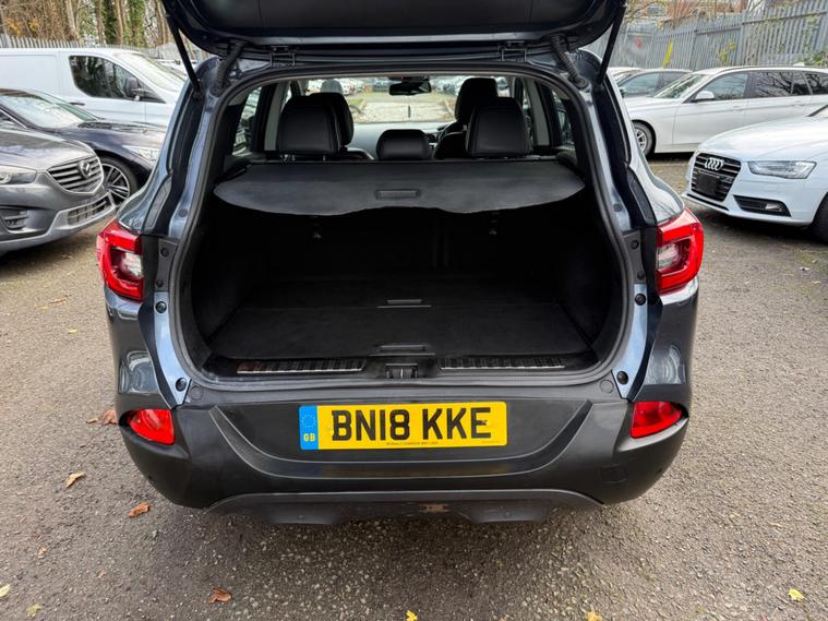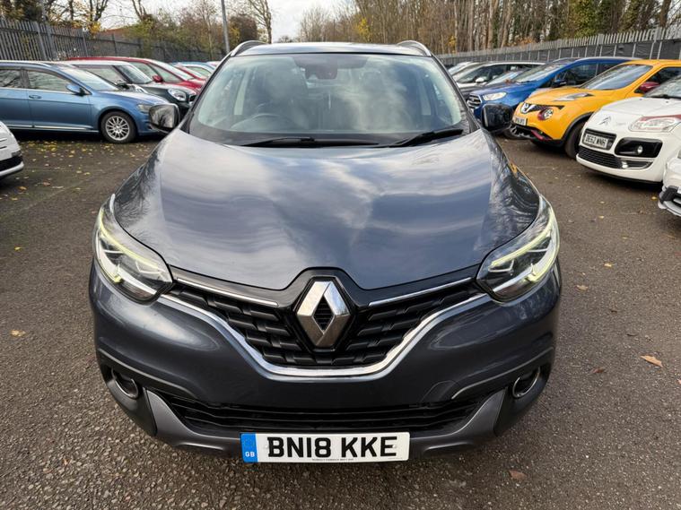 GREY, FINANCE AVAILABLE, NAVIGATION SYSTEM , PARKING SENSORS, PANORAMIC ROOF, ONLY ONE FORMER KEEPER, PRIVACY GLASS, START/STOP, CRUISE CONTROL, ULEZ COMPLIANTSUPERB DRIVE, VERY ECONOMICAL, ALLOY WHEELS, CLIMATE CONTROL, VERY WELL LOOKED AFTER, VERY CLEAN IN AND OUT.This 2018 Renault Kadjar dCi Signature Nav boasts a single owner and a clear vehicle history check, offering peace of mind for its next keeper. This Euro 6 compliant 1.6L diesel engine is presented in the desirable Signature Nav trim, featuring a fixed panoramic sunroof for an airy cabin, and a BOSE Energy Efficient Sound System for an enhanced audio experience. Convenience is key with the Hands Free Keycard allowing for keyless entry, while the Climate Pack ensures comfort with automatic climate control and automatic headlights. Stay connected on the go with Android Auto integration.This Kadjar is designed to be economical and efficient, with an impressive fuel economy of 63 mpg, which is better than many similar vehicles. Its low CO2 emissions and low insurance group also indicate that running costs are kept to a minimum, making it a sensible choice. Furthermore, the MOT is valid until November 2026, providing extended roadworthiness assurance..