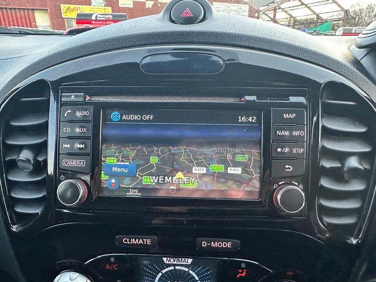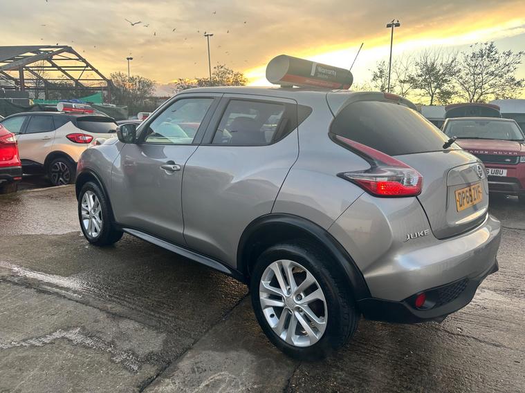 PRESENTING THIS NICELY CLEAN NISSAN JUKE FOR SALE. IN GOOD BODY CONDITION CLEAN INTERIOR AND EXTERIOR. HAS CAMERA. NICELY PARCIAL LEATHER SEATS. SAT-NAV. BLUETOOTH... AND MORE FEATURES IN SPECS. MECHANICALLY PERFECT NO ANY ISUUES. JUST BEEN SERVICED NEWOIL-OIL FILTER-AIR FILTER. FRESH MOT JUST DONE NO ANY ADVISORIES. HPI CLEAR NO ANY ACCIDENTS. ULEZ COMPLIANT. 2KEYS. FULL SERVICE HISTORY. 3 MONTH WARRANTY ON ENGINE AND GEARBOX THROUGH OUR COMPANY. FLEXIBLE TO EXTEND WARRANTY TERMS. 12 MONTH FREE AA BREAKDOWN COVER. FOR MORE DETAILS PLEASE CALL US.This 2017 Nissan Juke DIG T N Connecta is a great choice for those seeking a stylish and practical compact SUV. It features a responsive 1.2 litre petrol engine and meets Euro 6 emission standards. Inside, you'll find convenient features like Intelligent Key with Start Push Button for keyless entry and starting, along with a colour reversing camera to aid with parking. The Juke also offers automatic climate control with a pollen filter to keep the cabin comfortable, and Bluetooth integration for seamless telephone connectivity.This Juke N Connecta stands out with its impressive fuel economy, achieving up to 50 miles per gallon, which is excellent for its class. Its low CO2 emissions also contribute to its appeal, making it a more environmentally conscious option. Furthermore, its low insurance group rating means that running costs are kept down, offering you more value. These highlights demonstrate how this Nissan Juke is a smart and economical choice compared to many other vehicles..