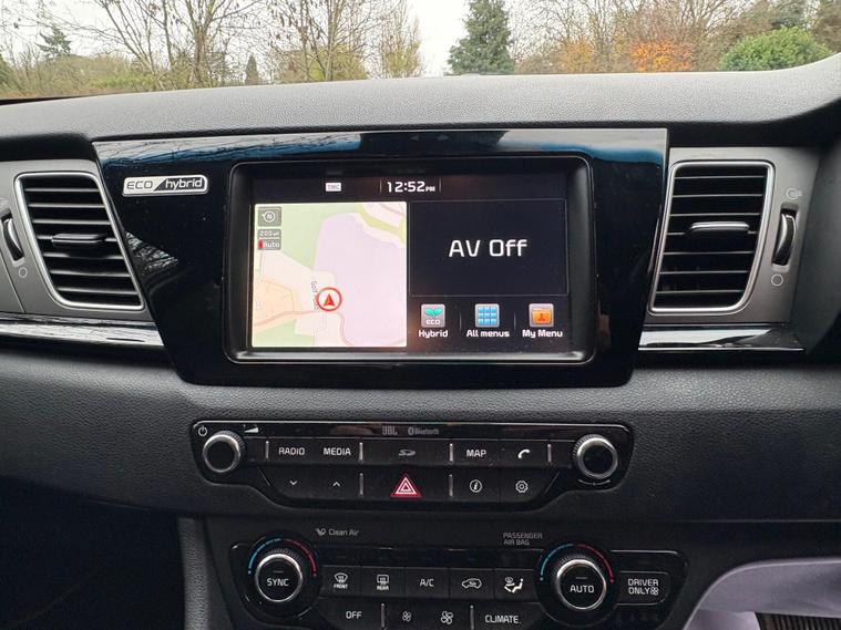 This 2017 Kia Niro h GDi 3 is a smart choice for those seeking efficiency and modern convenience. As a Euro 6 compliant model, it features a 1.6 litre petrol hybrid engine, offering an impressive fuel economy of 64 miles per gallon. This particular trim level, the '3', comes equipped with a range of useful features designed to enhance your driving experience, including front and rear parking sensors to aid manoeuvrability, and a heated steering wheel for added comfort on colder days. You'll also appreciate the heated front seats, perfect for those chilly mornings.The Kia Niro h GDi 3 stands out with its low insurance group, suggesting lower running costs compared to similar vehicles. Furthermore, its Android Auto connectivity allows for seamless integration of your smartphone, providing easy access to navigation, music, and calls. These highlights demonstrate how this 2017 Kia Niro offers a well rounded package of practicality, comfort, and technology..