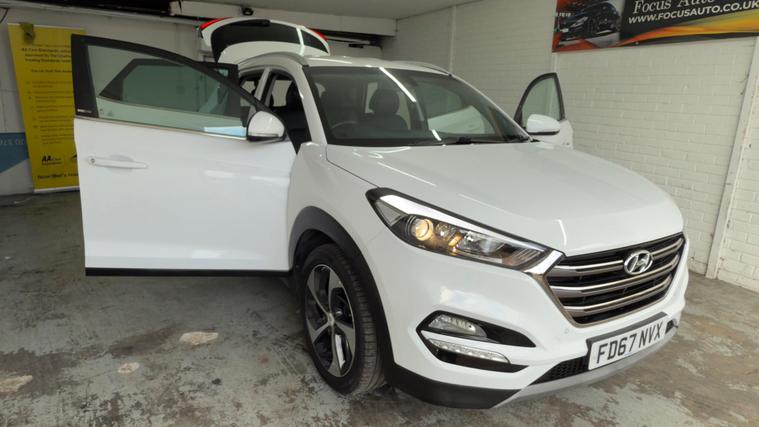 his 2017 Hyundai TUCSON T-GDi Sport Edition boasts a full service history and an MOT valid until December 2026, offering excellent peace of mind. This Euro 6 compliant 1.6 litre petrol model comes with a clear vehicle history check and had its last service at 56, 500 miles, with a 3 month warranty included for your assurance.The TUCSON Sport Edition is equipped with desirable features such as heated front and rear seats, dual zone climate control with ioniser, and front and rear parking sensors for added convenience. Enjoy seamless connectivity with Bluetooth, and appreciate the generous boot space perfect for all your needs. This model also benefits from a low insurance group, making it an economical choice. Its impressive acceleration of 0 to 62mph in just 8.9 seconds indicates a more responsive driving experience compared to many other vehicles in its class.All vehicles are inspected by trained technicians and are history checked. Test drives and part-exchange are available, and you can choose, buy and drive away the same day. Three months mechanical parts and labour warranty included. Third party extended Warranty (up to 36 months) options are available. Free 12 months AA roadside breakdown Assistance. 5 days drive away Insurance available from £44.99 (term & conditions apply) Our cars are HPI cleared. Competitive finance options are available. NO Admin Fee- NO ADMIN fee on finance application made with us. Admin fee may apply on finance application made from third party( please ask for details). All Major cards are accepted. Look our website dealer's website for further information..