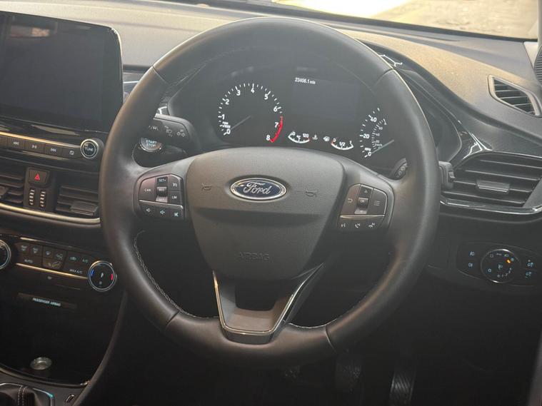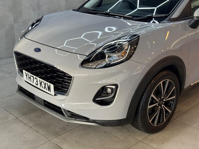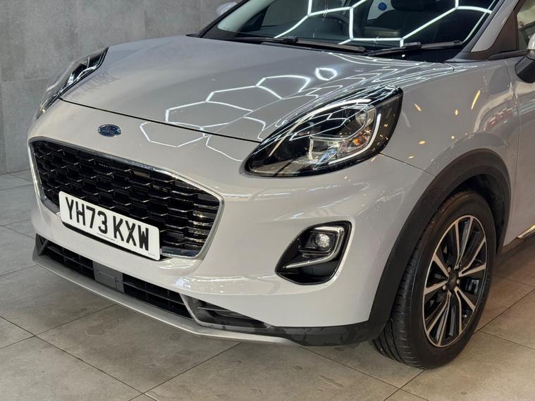 This 2023 Ford Puma T Titanium is a superb example, boasting a clear vehicle history and having had only one owner since new. This stylish compact SUV is powered by an efficient 1.0L Petrol Hybrid engine, meeting Euro 6 emission standards. Inside, you'll find the convenient Ford SYNC 3 Navigation system, complete with Android Auto and Apple CarPlay for seamless smartphone integration, alongside Bluetooth connectivity. Comfort is assured with Electronic Air Temperature Control, offering EATC and Climate Control, while the Rear Parking Sensors, including Parking Assistance, make manoeuvring simple.The Ford Puma T Titanium stands out with its impressive fuel economy, achieving a highlight of 52 miles per gallon, and its low CO2 emissions, demonstrating its efficiency compared to other vehicles in its class. This combination of advanced technology, economical hybrid power, and single owner provenance makes this 2023 Puma a compelling choice for those seeking a modern and responsible driving experience..