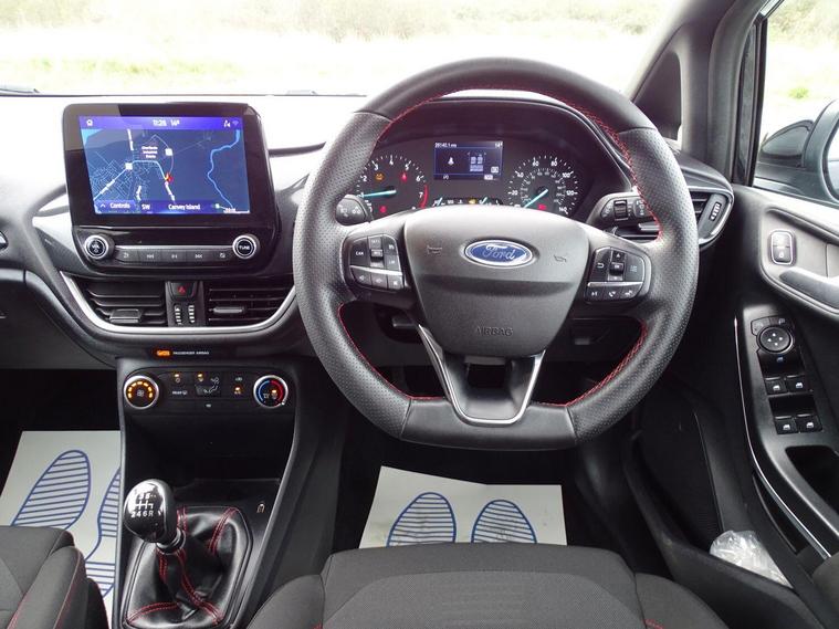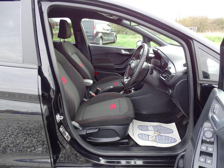 This 2022 Ford Fiesta ST-Line is a superb example, having had only one owner since new. This popular hatchback boasts a responsive 1.0L petrol engine and meets Euro 6 emissions standards. Inside, you'll find manual air conditioning to keep you comfortable, while automatic headlights with LED technology, including daytime running lights and integrated fog lights, ensure excellent visibility. The SYNC 3 system with navigation is a standout feature, offering seamless integration with Android Auto and Apple CarPlay for your smartphone. Plus, rear parking distance sensors make manoeuvring in tight spots a breeze.The Ford Fiesta ST-Line is designed for an engaging driving experience, with a 0-62mph acceleration time of 10.8 seconds. This particular model's combination of a single owner, desirable ST Line trim, and advanced features like LED headlights and the SYNC 3 system with smartphone connectivity sets it apart from other vehicles in its class, offering a well equipped and enjoyable drive..