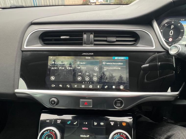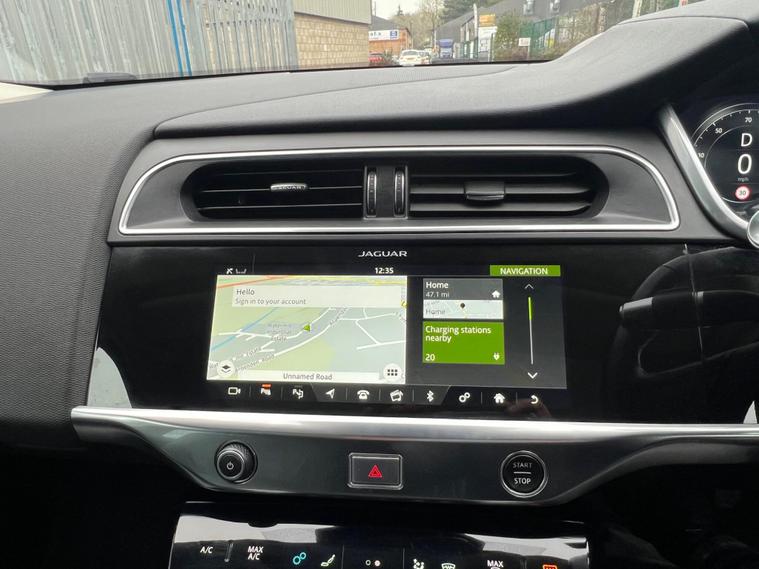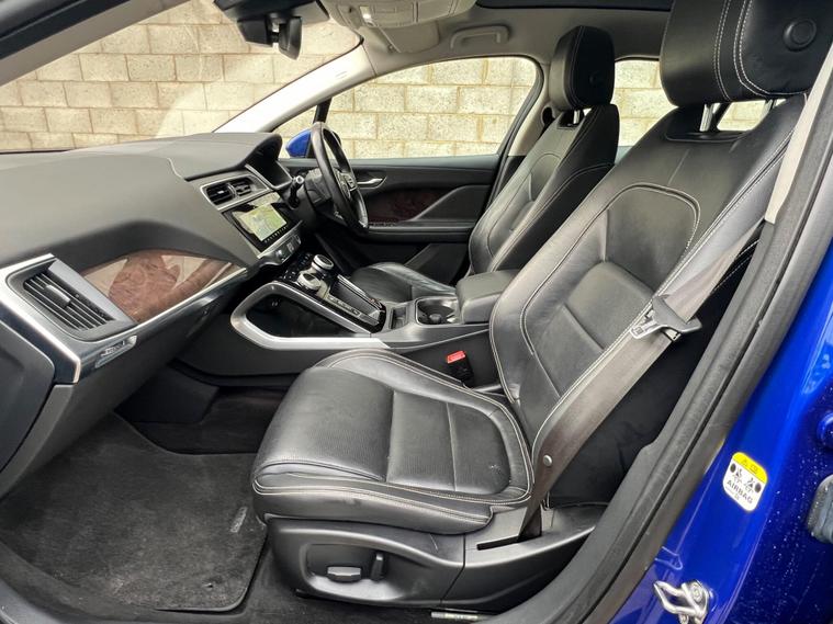 This 2020 Jaguar I-PACE 400 SE boasts a clear vehicle history, offering peace of mind alongside its premium electric driving experience. As a Four Wheel Drive model, it combines the sophisticated SE trim with an impressive 90 kWh battery, providing a maximum range of 284 miles when new. Inside, you'll find comfort and convenience with 10-way electric memory front seats and 2-zone climate control, while the Drive Pack enhances safety with Blind Spot Assistance and Adaptive Cruise Control. Connectivity is seamless thanks to Bluetooth, and parking is made easier with front and rear parking sensors included in the Park Pack.Experience exhilarating performance with the Jaguar I-PACE, capable of accelerating from 0 to 60 mph in just 4.5 seconds, a testament to its electric power. This impressive acceleration highlights its dynamic capabilities compared to many other vehicles. Furthermore, the I-PACE offers substantial practicality with its large boot space, making it ideal for everyday use and longer journeys. Charging is convenient, with a full charge at home taking approximately 12 hours and 36 minutes on a 7kW charger, and a rapid charge to 80% achievable in around 50 minutes at a public charging station..