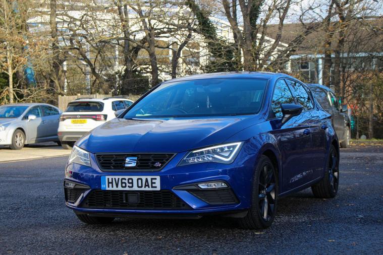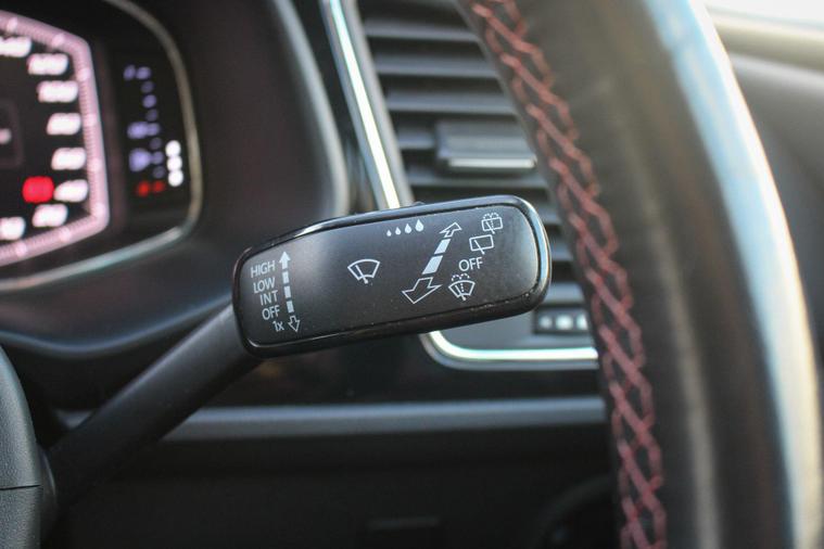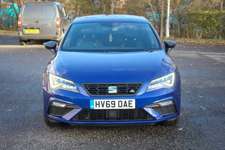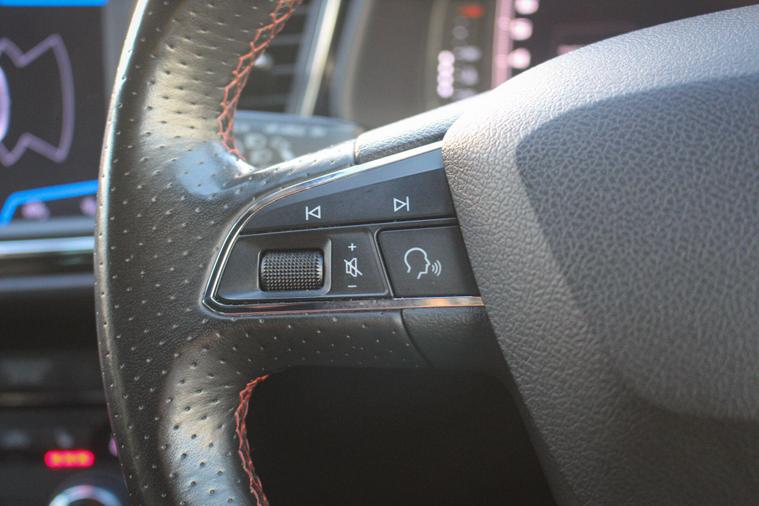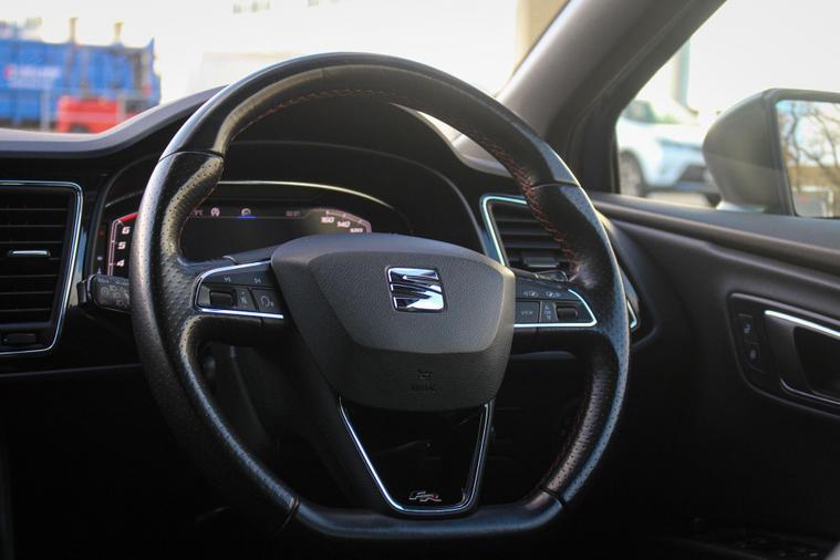 - Steering Wheel - Flat-Bottomed Perforated Leather with Red Stitching and FR Logo