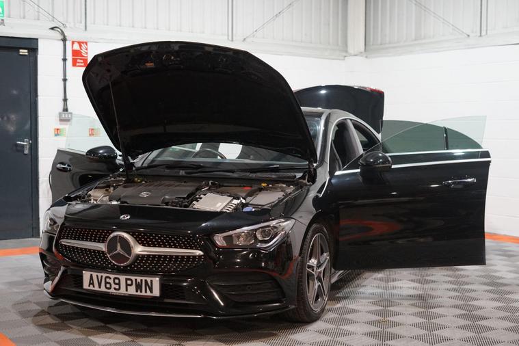 Sleek, sporty and unmistakably premium, this Mercedes-Benz CLA220d AMG Line (Premium) Coupe looks absolutely stunning finished in the sophisticated Cosmos Black. Its striking coupe silhouette is complemented by eye-catching 18-inch diamond cut AMG alloy wheels, giving the car a powerful and dynamic road presence.Inside, the cabin is designed to impress. The beautifully crafted black leather seats offer exceptional comfort and support, with heated front seats adding a touch of luxury on colder days. The CLA’s advanced digital dashboard pairs seamlessly with the large central display, creating a truly modern and immersive driving environment. With ambient interior lighting offering a choice of colours, you can tailor the atmosphere to suit your mood.Technology is at the heart of this Premium model, providing everything you need for an enjoyable and connected drive. The intuitive multifunctional steering wheel allows you to control key features with ease, while satellite navigation ensures you’re always on the right path. Parking is made effortless thanks to the crystal-clear reversing camera, giving you confidence in tight spaces.Efficient, refined and packed with high-end features, this CLA220d AMG Line Premium blends Mercedes-Benz luxury with sporty styling and cutting-edge technology, offering an exceptional driving experience every time you step inside..