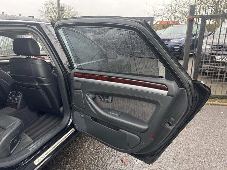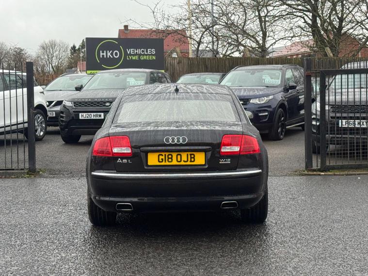 Welcome to HKO Vehicles Lyme Green!We’re proud to present this exceptionally rare and luxurious Audi A8 6.0 W12 Quattro LWB Automatic, a true flagship saloon offering unmatched refinement, power, and presence. As an AA Approved Dealer, this vehicle comes with 12 months free AA Breakdown Cover, full service history, a long MOT, 3 months warranty, and finance options available—ensuring complete peace of mind. This remarkable 2005 (55 plate) long-wheel-base A8 has covered 107, 000 miles, is finished in elegant Black, and has been meticulously maintained throughout its life. With four owners and presented in outstanding condition, this is easily one of the finest examples of the incredibly rare W12 model currently available. A true collector’s piece and a breathtaking luxury experience.Manufacturer Specification HighlightsEngine: 6.0 W12 PetrolTransmission: AutomaticDrive: Quattro All-Wheel DriveBody Style: 4-Door Long Wheel Base SaloonColour: BlackRegistration: G18 OJBMileage: 107, 000 milesOwners: 4Key FeaturesExtremely Rare 6.0 W12 Model – exceptional performance & refinementLong Wheel Base (LWB) – ultimate rear passenger comfortFull Privacy Glass & Rear Privacy Blinds – luxury, comfort, and discretionMeticulously Maintained Example – cherished and cared for throughoutAutomatic Transmission – smooth, refined power deliveryPremium Full Leather InteriorHeated Front & Rear SeatsSoft-Close DoorsElectric Memory SeatsDual-Zone (or Four-Zone) Climate ControlBose Premium Sound System (model dependent)Navigation SystemAdaptive Air SuspensionCruise ControlElectric Rear SunblindFront & Rear Parking SensorsXenon HeadlightsQuattro AWD System – legendary Audi stability and controlAlloy WheelsOutstanding Ride Quality & Cabin QuietnessThis Audi A8 W12 LWB is a stunning, rare opportunity to own one of Audi’s finest creations. With its incredible 6.0 W12 engine, luxurious long-wheel-base comfort, privacy features, and exceptional condition, it stands out as one of the very best examples on the market today. Whether for luxury commuting, chauffeur u.