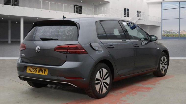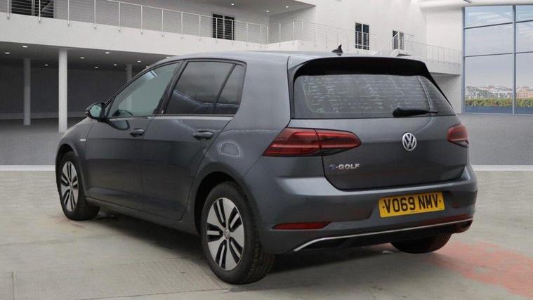 This 2019 Volkswagen e Golf presents a clear vehicle history, offering peace of mind for its next owner. As an electric vehicle, this e Golf variant boasts a 36 kWh battery with a maximum range of 144 miles when new. Charging is convenient, with a full charge at home using a 7kW charger taking approximately 5 hours and 20 minutes, and a rapid charge to 80% achievable in just 40 minutes at a public charging station. Notable features include the Convenience Pack, which incorporates automatic headlights and a dusk sensor for automatic driving lights, alongside front and rear parking sensors with parking assistance. The cabin also benefits from climate control and LED headlights for enhanced visibility.The spacious boot offers ample room for your shopping or luggage, making this e Golf a practical choice for everyday use. The inclusion of automatic headlights and parking sensors, alongside climate control, demonstrates a thoughtful specification that enhances the driving experience. These features, combined with its electric powertrain and impressive charging capabilities, position this Volkswagen e Golf as a well equipped and efficient option within its class..
