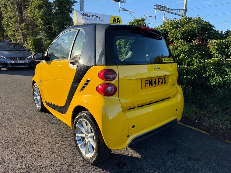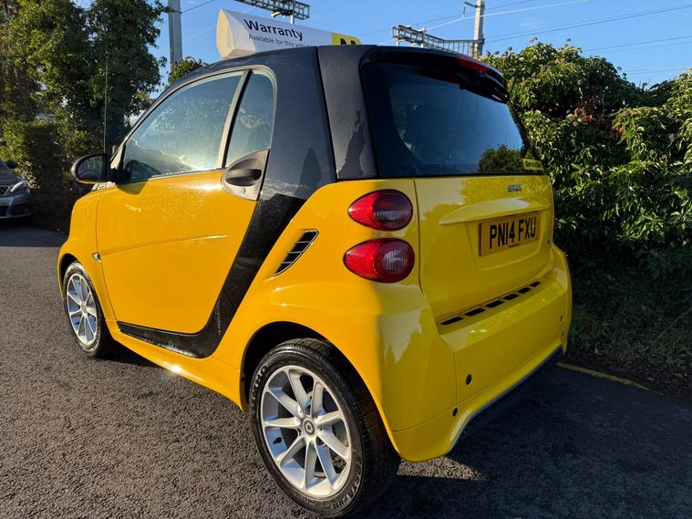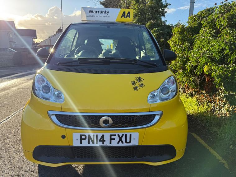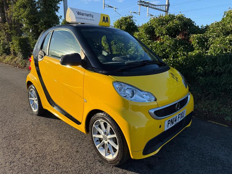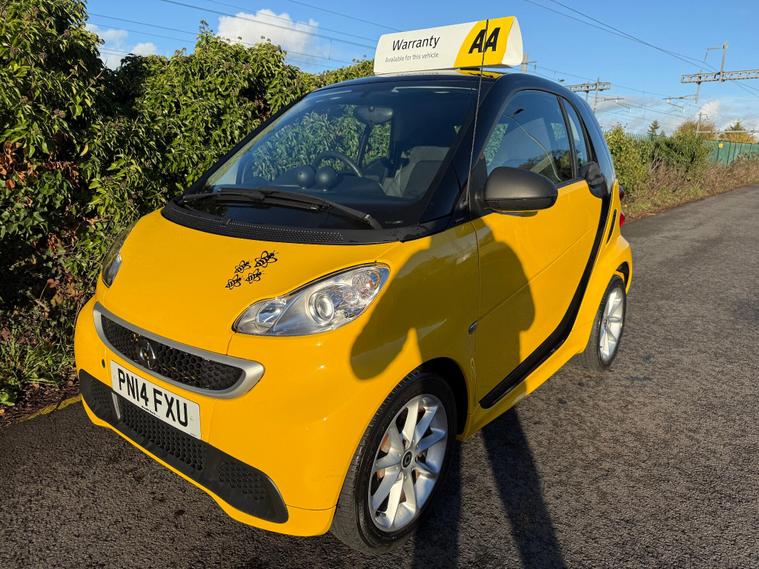 Discover this exceptional 2014 Smart Fortwo MHD Passion, boasting remarkably low mileage of just 23, 000 miles for its age. This compact city car is powered by an efficient 1.0L petrol engine and comes in the desirable Passion trim. Inside, you'll appreciate the comfort of Air Conditioning with Automatic Temperature Control, ensuring a pleasant cabin environment whatever the weather. Stay connected on the go with the integrated Bluetooth Hands Free System, and enjoy the open air with the opening Panoramic Roof.This Smart Fortwo stands out with its impressive fuel economy, achieving an excellent 66 miles per gallon, which is significantly better than many other vehicles in its class. Furthermore, its low CO2 emissions contribute to a more environmentally friendly drive. This combination of outstanding efficiency and thoughtful features makes this particular Smart Fortwo MHD Passion a compelling choice for economical and convenient urban motoring..