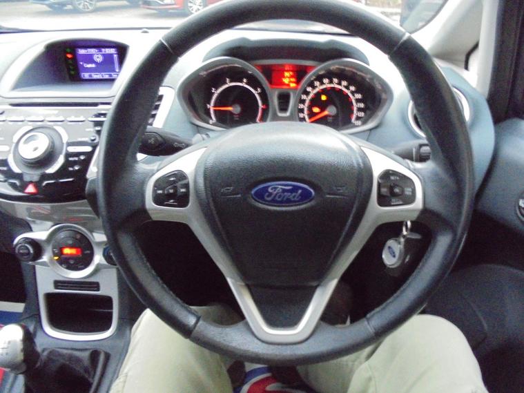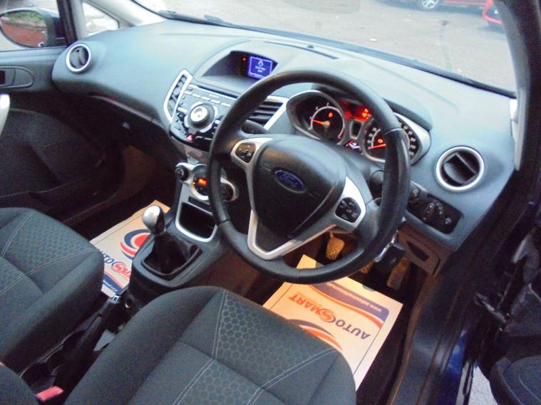 FORD FIESTA 1.6 TITANIUM 5 DOOR EURO 5.STUNNING EXAMPLE OF THIS ONE PREVIOUS OWNER FROM NEW 5 DOOR HATCHBACK IN METALLIC BLUE WITH CONTRASTING CHARCOAL CLOTH INTERIOR.FANTASTIC SERVICE HISTORY WITH GREAT dealer's website WITH BLUETOOTH CONNECTIVITY, FRONT AND REAR HEATED SEATS, AIR CON, CRUISE CONTROL.USB+AUX AND 16 INCH ALLOY WHEELS WITH TWO KEYS.VERY DESIRABLE MODEL WITH MOT UNTIL NOVEMBER 2026 AND FRESH SERVICE.12 MONTHS FREE AA BREAKDOWN COVER AND 18 MONTHS WARRANTY INCLUDED IN PRICE.P/X WELCOME..