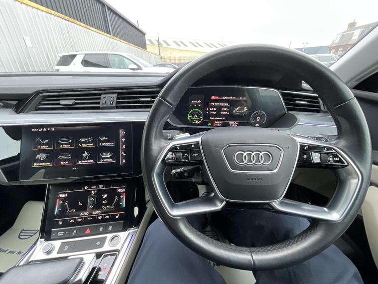 This 2021 Audi e-tron Technik boasts a clear vehicle history, offering you peace of mind. This electric, four wheel drive SUV features a substantial 95 kWh battery, providing a maximum range of 249 miles when new. Charging at home using a 7kW charger will take approximately 14 hours for a full charge, while rapid public charging can take you from empty to 80% in as little as 40 minutes. The MOT is valid until June 2026, further enhancing its appeal. Experience impressive performance with the Audi e-tron, accelerating from 0 to 62mph in a swift 5.7 seconds. This Technik variant offers ample space, including a large boot, making it practical for everyday use and longer journeys. The combination of its electric powertrain, four wheel drive capability, and the generous battery capacity sets this Audi e-tron apart, offering an efficient and capable driving experience..
