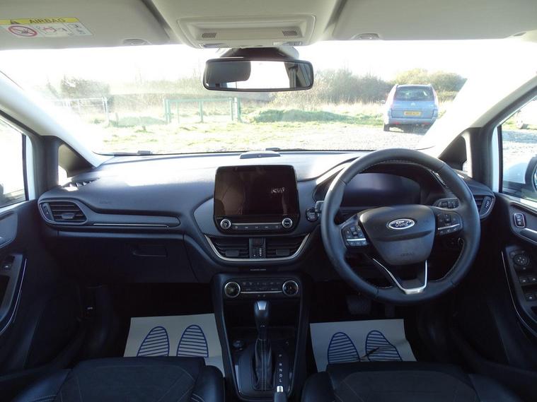 This 2022 Ford Fiesta Titanium Vignale offers an exceptional ownership proposition with an incredibly low mileage of just 6000 miles, having had only one owner from new. This Euro 6 compliant 1.0L Petrol Hybrid model combines efficiency with performance, achieving 0-62mph in a brisk 9.6 seconds. The Titanium Vignale trim level ensures a premium experience, enhanced by the inclusion of the Driver Assistance Pack with adaptive cruise control, and the Ford Key Free System for effortless keyless entry and start.Further elevating this Fiesta are its advanced technology and convenience features. The SYNC 3 system with navigation seamlessly integrates with your smartphone via Android Auto and Apple CarPlay, and includes wireless phone charging for added ease. Navigating tight spaces is made simple with the Parking Pack, featuring front parking sensors, while the striking LED headlights with integrated daytime running lights and fog lights provide excellent visibility. These carefully selected features and its outstanding provenance demonstrate why this particular Ford Fiesta stands out from others..