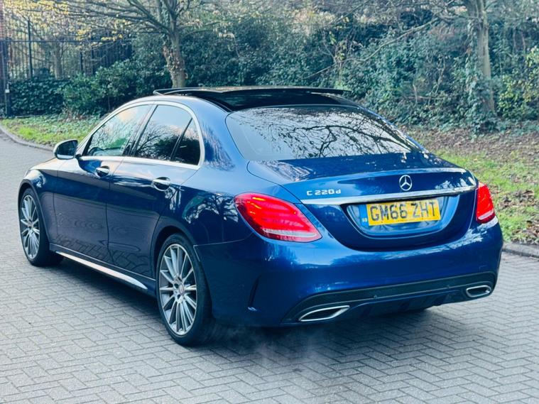 This 2016 Mercedes Benz C Class C220d AMG Line (Premium) boasts an impressively low mileage of just 63, 000 miles, a testament to its careful ownership by only two previous keepers. This Euro 6 compliant model features a powerful yet efficient 2.1L diesel engine, delivering a remarkable 63 mpg. The AMG Line trim enhances its sporty appeal, while the Premium designation adds desirable features such as High Performance LED headlights, a panoramic glass sunroof for an airy cabin feel, and a Bluetooth interface for seamless hands free calls. Parking is made easier with rear parking sensors, and the Keyless Go Comfort Package allows for effortless entry and starting.Experience the blend of performance and economy this C Class offers, with its brisk 0-62mph acceleration in just 7.4 seconds indicating a more dynamic driving experience compared to many similar vehicles. The combination of its excellent fuel economy and strong performance means you do not have to compromise. This Mercedes Benz C Class represents a compelling choice for those seeking a premium saloon with a strong combination of style, technology, and efficiency..