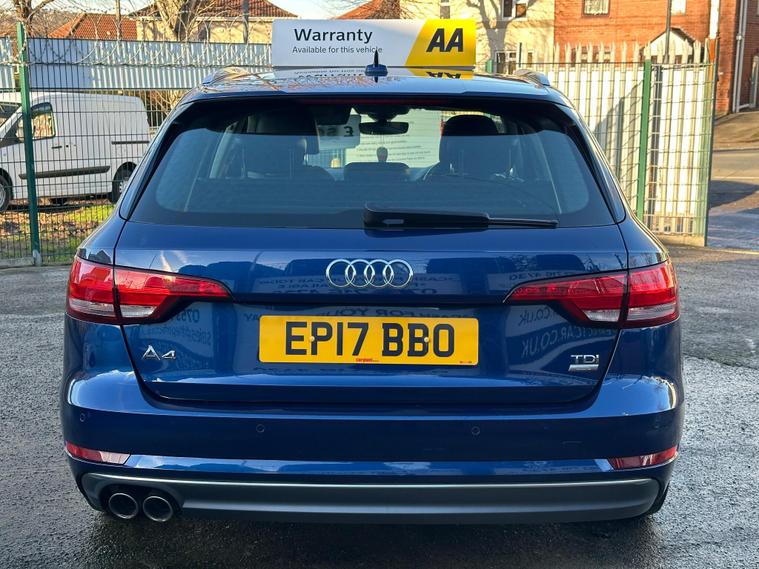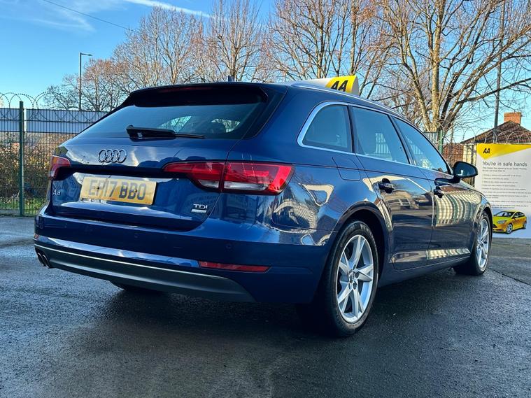 This 2017 Audi A4 Avant TDI Sport is a superb example, having had only two owners from new. This stylish estate car features a powerful yet efficient 2.0 litre diesel engine, meeting Euro 6 emission standards. Inside, you'll find a Deluxe 3-Zone Electronic Climate Control system for personalised comfort, a Bluetooth interface for seamless connectivity, and a Parking System Plus with front and rear sensors to aid manoeuvring. The convenience of automatic headlights is also included, activated by the Light and Rain Sensor.This Audi A4 Avant offers impressive performance with a 0-60mph acceleration time of just 7.6 seconds, demonstrating its dynamic capability. Its fuel economy is a standout feature, achieving an excellent 69 miles per gallon, which is better than many similar vehicles. Furthermore, its low CO2 emissions and low insurance group rating contribute to lower running costs, making it a more economical choice for everyday driving..